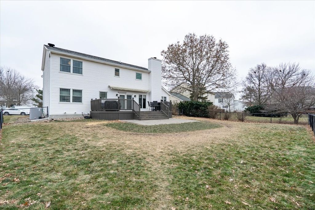 Stunningly Updated 4BR/2.5BA in Old Farm Lakes! This move-in-ready traditional home features a long list of high-end updates. The main floor shines with new Pergo flooring, leading to a gorgeous kitchen with brand-new quartz countertops. Peace of mind comes with all-new Anderson windows throughout and a newer 30-year roof. The family room boasts a cozy wood-burning fireplace, while the upper level hosts four spacious bedrooms. The backyard is a private oasis featuring a large deck and a newly added raised patio within a fully fenced lot with professional landscaping. Steps from the lake, park, and Constitution Trail. Don't miss this one!