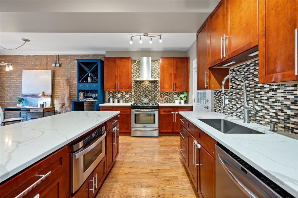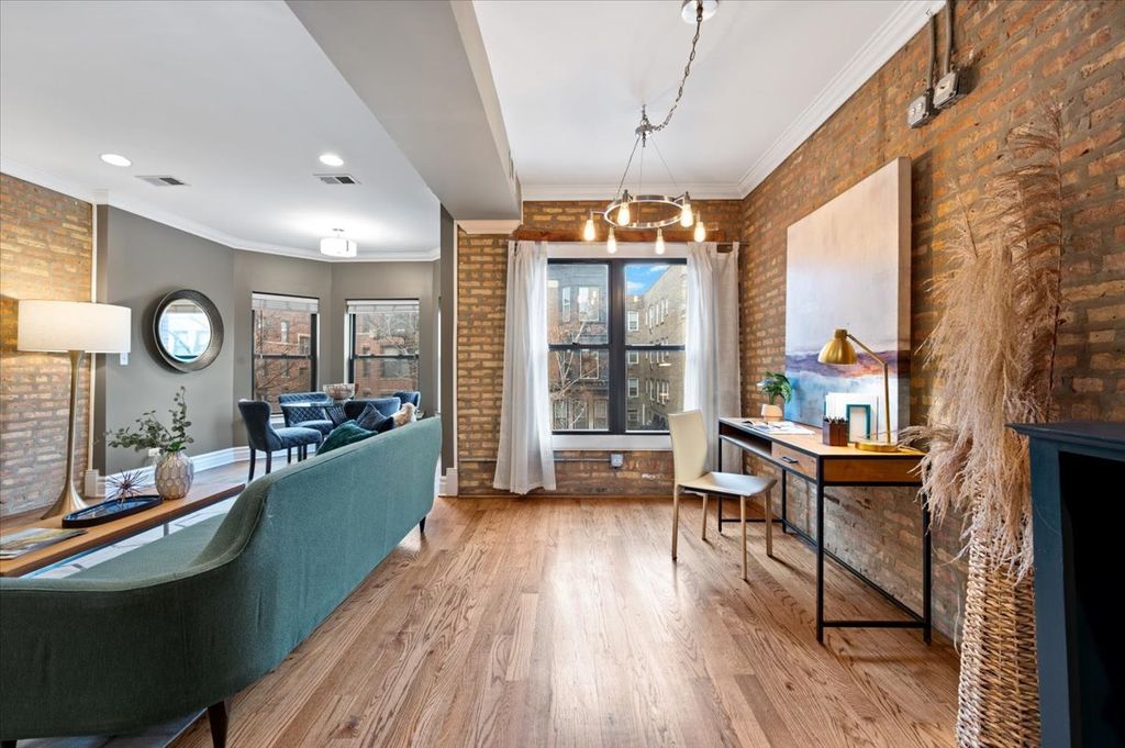 Spacious 2bd/2bth condo in the heart of East Lakeview. Set in an intimate all-masonry building, this home blends modern updates with classic charm. The living area features a wide-open floorplan with a generous kitchen and defined living and dining room spaces. Highlights include hardwood floors throughout, exposed brick, in-unit laundry (2023), gas forced heat with newer furnace (2023) and central air (2020). The kitchen has been recently updated with quartz countertops and a newer refrigerator (2023). Both bedrooms are generously sized with well-organized closet space. Step outside to a massive private composite deck just off the kitchen and Primary Bedroom, ideal for outdoor dining and relaxing. Additional basement storage and an exterior parking space complete the package. Located in the Nettelhorst Elementary School District and close to top restaurants, shopping, the lakefront, parks, Wrigley Field, and the Red Line.