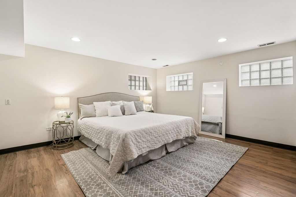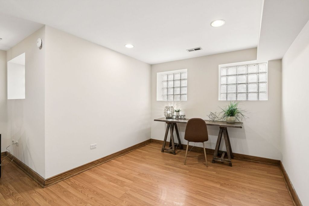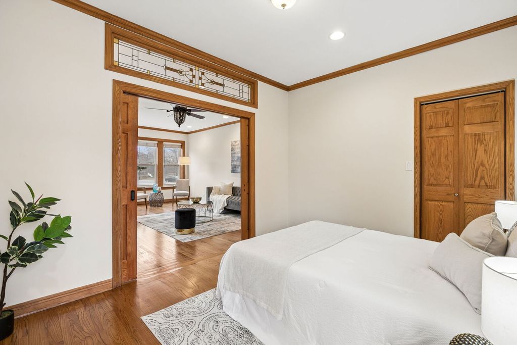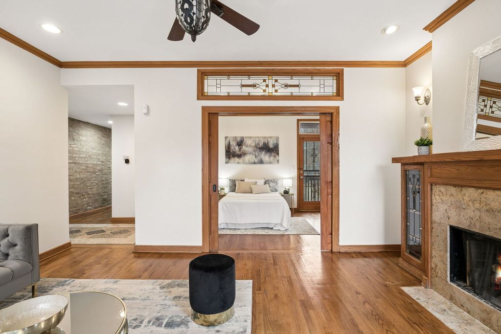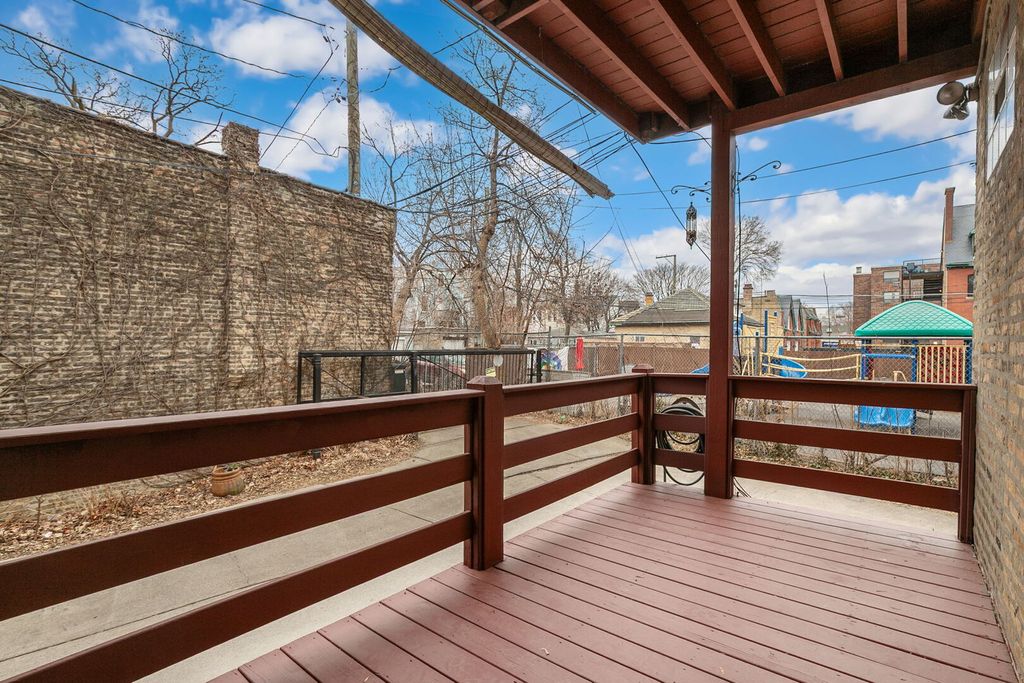 Directly across from picturesque Palmer Square on the historic boulevard, this stunning 3-bedroom, 2-bathroom duplex home pairs expansive living space with timeless character - all in an unbeatable Logan Square location! Ideally situated in a quiet, solid brick building on a sprawling green space, this exceptional home lives like a single-family residence, with nearly 2,500 square feet across two levels of beautifully designed living space. A welcoming foyer with a gorgeous tile inlay leads you to a sun-filled living room featuring a cozy fireplace with ornate built-ins and a charming sunroom with a wall of windows overlooking the park. The beautifully renovated kitchen boasts sleek quartz countertops and stainless steel appliances, including a brand-new stove and Bosch dishwasher, and flows seamlessly into a true formal dining room - perfect for entertaining. From here, step outside to your oversized private rear deck, ideal for outdoor dining and relaxing. A generous bedroom with a private balcony, a spacious second bedroom, and a tastefully appointed full bathroom complete the upper level of the home. Soaring ceilings, solid wood doors & trim, crown molding, exposed brick, stained glass accents, gorgeous vintage light fixtures, and freshly refinished hardwood floors add timeless elegance and warmth throughout. The lower level provides incredible flexibility, complete with a large third bedroom with double closets, a massive family/rec room, a full-size side-by-side washer/dryer, and a luxurious spa-like bathroom with a jacuzzi tub, separate shower, dual vanity, and bidet. Storage and 2-car tandem parking included in the price! Enjoy the best of Logan Square living with the tranquility of the park just outside your door, along with unbeatable access to the Blue Line, Fullerton bus, I-90/94, and Logan Square's incredible collection of restaurants, cafes, nightlife, shopping, and entertainment. OFFER ACCEPTED - open houses cancelled!