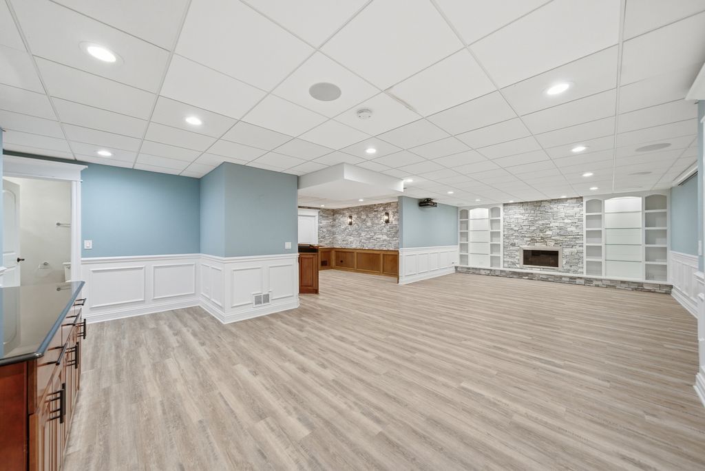 Welcome to 1614 Darien Club Drive, a beautifully situated home in one of Darien's most desirable neighborhoods-the Darien Club subdivision. This inviting residence offers the perfect blend of custom features, fine millwork, functionality, and suburban charm, set on a quiet street surrounded by well-kept homes and mature landscaping. Inside, you'll find bright, well-proportioned living spaces designed for both everyday living and easy entertaining with speakers throughout the home. Enter through the two-story foyer, where natural light fills the home, creating a warm and welcoming atmosphere. The layout flows effortlessly with five-inch white oak floors throughout, offering flexibility for relaxing nights in, hosting gatherings, or working from home. The first floor features open-concept living with a chef's kitchen boasting a ten-foot island, double wall ovens, and a cooktop, opening to a large living space with 18-foot ceilings and a brick, wood-burning fireplace. Enter from the attached three-car garage into a fully custom-built mudroom with secondary sinks and a refrigerator. From the kitchen, walk through the butler's pantry into the formal dining room, across from a formal sitting room and a custom oak built-in office. Head upstairs on one of two staircases to the elegant primary suite featuring his-and-hers custom closets and a spacious bathroom with dual vanities, a clawfoot tub, a steam shower, and enclosed water closets. Two additional bedrooms are connected by a Jack-and-Jill bathroom. The second floor also includes a fourth bedroom with an en-suite bathroom featuring a walk-in shower, along with a custom-built laundry room offering abundant storage. The finished basement includes four additional bedrooms, a custom-built recreation room with a wood-burning fireplace, full bathroom with stand up shower, and a full built-in bar. The basement also provides additional storage and a secondary stairwell with access to the garage. Home also features a hardwired security system with cameras and ring video doorbell and wifi thermostats as well as whole home central vacuum system. Step outside and enjoy a peaceful setting ideal for unwinding or spending time with family and friends. Outside the lot has a full electronic dog fence and full rainbird irrigation system. Ideally located near parks, schools, shopping, dining, and major commuter routes, 1614 Darien Club Drive offers the best of suburban living with convenient access to everything Darien has to offer. This is a wonderful opportunity to own a home in a sought-after community where comfort, convenience, and value come together.