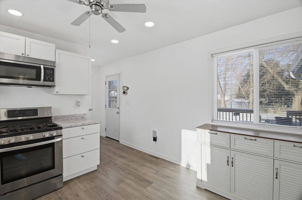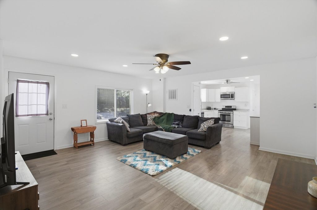 Beautifully remodeled in 2023, this charming ranch-style home offers a bright, open floor plan designed for modern living. Natural light fills the living areas, creating a warm and welcoming atmosphere throughout. The home features three comfortable bedrooms and two full bathrooms, thoughtfully updated with contemporary finishes. A dedicated laundry room adds everyday convenience. Step outside to a generously sized back deck-perfect for entertaining or relaxing-overlooking a spacious backyard with plenty of room to play, garden, or unwind. This move-in-ready home combines style, comfort, and functionality in one inviting package.