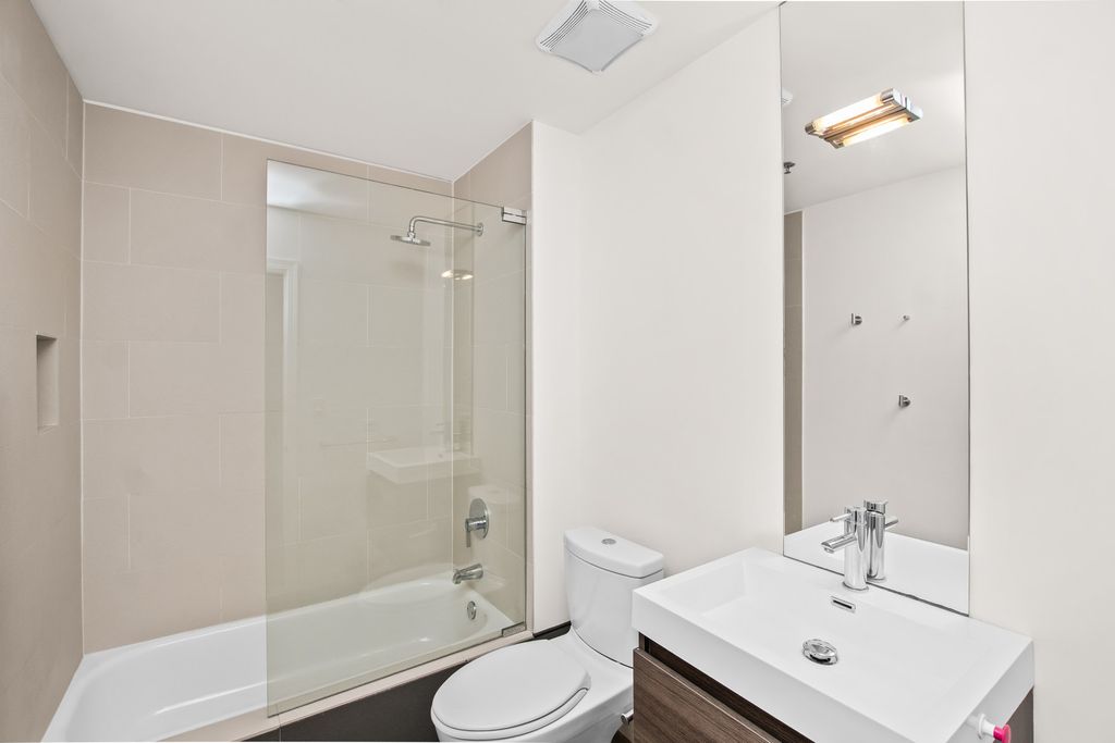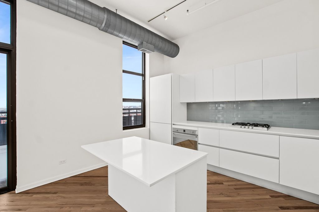 Amazing penthouse unit with 11' ceilings and an 85' long terrace! Open floor plan with hardwood floors throughout. Tremendous natural light with north facing windows that provide an unobstructed view. The living and dining room are highlighted by a decorative fireplace and dual sliding doors to the terrace. The kitchen is finished with quartz counters, under cabinet lighting and features an island that was designed to seamlessly incorporate the table into the space. Excellent room sizes and plentiful closet space that are demonstrated by the enormous primary suite with a wall of 4 closets plus a linen closet. The adjoining private bath is complete with dual sinks, a free standing soaking tub and a separate shower. Convenient in unit washer dryer, a storage locker in the lower level of the building plus a heated garage space. Building offers a fitness room and a dog park!