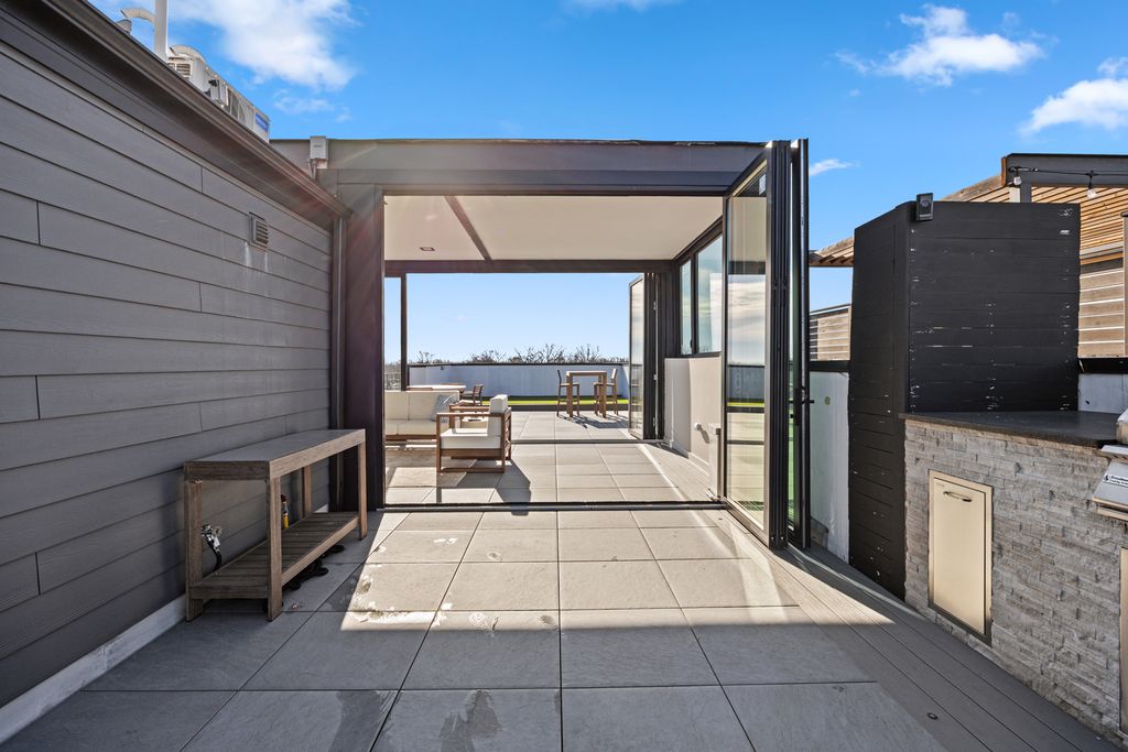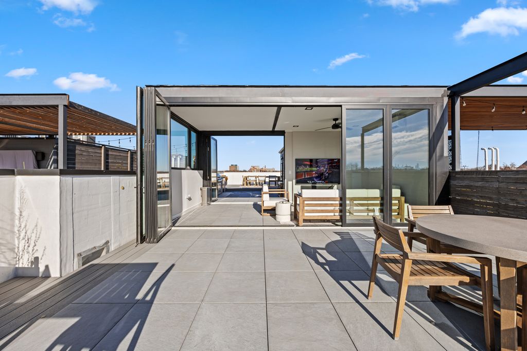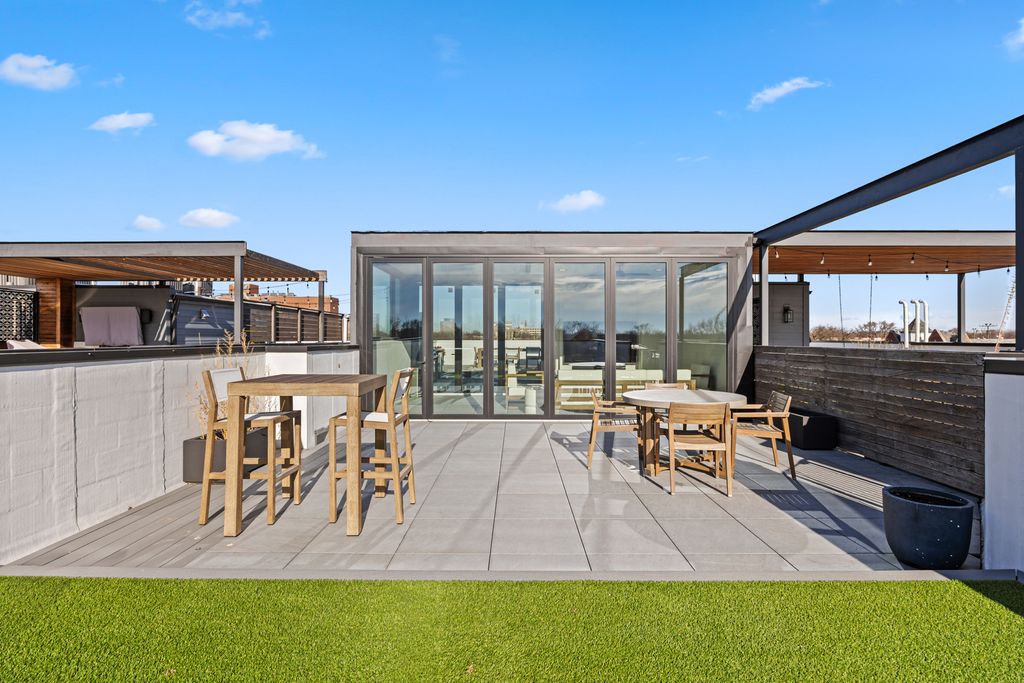 Stunning, extra-wide modern penthouse with a spacious layout and a sprawling private finished rooftop with NEW outdoor kitchen & four- season room, in the desirable Lincoln Square/Waters Elementary neighborhood. This luxurious 3-bedroom, 2-bathroom residence has meticulously designed living space and was skillfully built in 2020 by top developer, Platinum Homes. The well-appointed gourmet kitchen boasts a generously sized quartz island, top-of-the-line appliances from Fisher & Paykel, & Bosch including a gas cook top, wall oven/microwave, ultra quiet dishwasher & wine fridge. The extra-wide floor plan allows for a separate dining nook for a full-size table, with plenty of room for a large sectional in the living room. Adjacent to the main living area, a large front deck features timber tech decking, brick pony wall for privacy & a gas hookup for grilling. The primary suite offers an abundance of space, complete with dual walk-in closets. The spa-inspired bathroom in the primary suite features a double vanity, Toto fixtures, heated floors & a luxurious steam shower. New wall to wall carpet in the primary & 2nd bedrooms keeps the spaces cozy for bare feet. An interior staircase leads to the 1800 square feet spectacular private roof deck with new outdoor kitchen & four-season Panoramic glass door enclosed living space (climate controlled), setting the stage for entertaining & outdoor leisure year-round. Gas and water connections are thoughtfully integrated, along with speaker wiring, all set against the backdrop of Trex decking and pavers, offering downtown city skyline views. Garage parking included. Prime location within Waters School District, a short stroll takes you to the Rockwell Brown Line, North Shore Channel Trail & River Park. This location also offers easy access to an array of exceptional restaurants, grocery stores, shopping destinations, parks, and preschools.