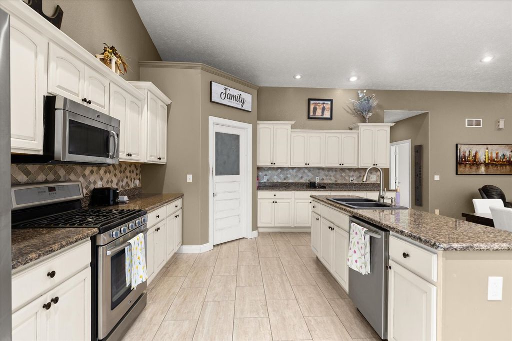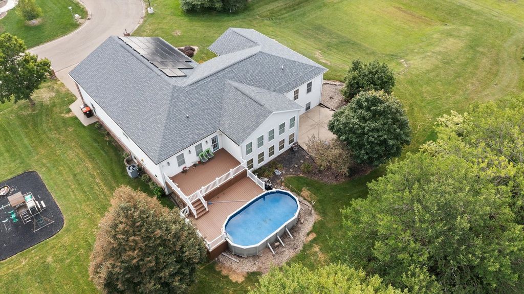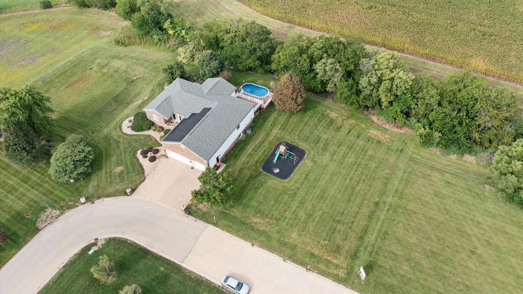 Beautiful 5-Bedroom Ranch on 1 Acre in Quiet Neighborhood Welcome home to this stunning 5-bedroom, 3.5-bath ranch situated on a spacious 1-acre lot in a peaceful, well-established neighborhood. From the charming front porch to the expansive backyard, this home offers comfort, style, and plenty of space both inside and out. Step inside to a welcoming foyer that opens into a large living room featuring a cozy gas fireplace-perfect for relaxing or entertaining. The open-concept design flows seamlessly into the dining area and a custom kitchen equipped with stainless steel appliances, granite countertops, an abundance of cabinetry, and a generous walk-in pantry. Brand-new carpet throughout the main level adds a fresh, inviting feel. The main floor boasts a spacious master suite with a luxurious attached bath, including a whirlpool tub, stand-up shower, and a large walk-in closet. Three additional main-level bedrooms share a full guest bath, offering plenty of room for family or guests. Step outside to enjoy the two-tiered deck, ideal for gatherings or quiet evenings, which surrounds a well-maintained above-ground pool-your own private retreat. Need more room? The full finished walk-out basement has it all, featuring new carpet, a huge family room, an additional bedroom and full bath, plus multiple flex rooms perfect for a home office, gym, hobby space, or guest suite. Additional highlights include a 3-car attached garage and modern mechanicals (please refer to the attached features sheet for full details on appliance and system ages). This home is a must-see-schedule your private showing today!