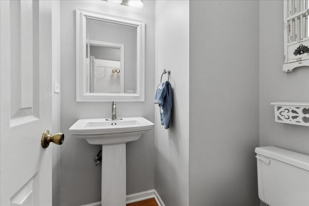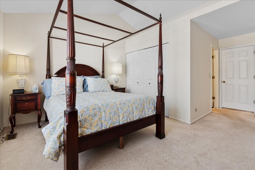Move-in ready Bradford model in a prime location with open-concept living and a dramatic 2-story living room featuring a floor-to-ceiling brick fireplace and a wall of windows that fills the home with abundant natural light. Ideal for entertaining, this bright and airy layout flows seamlessly into the updated kitchen with oak cabinetry, Pergo laminate flooring, and a sun-filled dining area with French doors leading to a private patio-perfect for outdoor entertaining and grilling. The upper level offers three generously sized bedrooms, including a spacious primary suite with vaulted ceilings, dual closets, and charming window detailing. Neutral finishes, 6-panel white doors, and a fresh, clean palette throughout make this home truly turn-key. Conveniently located near shopping, restaurants, parks, schools, and major commuter routes, this home delivers comfort, style, and convenience in a highly desirable community. A rare opportunity to own a well-maintained, move-in ready home in an excellent location!