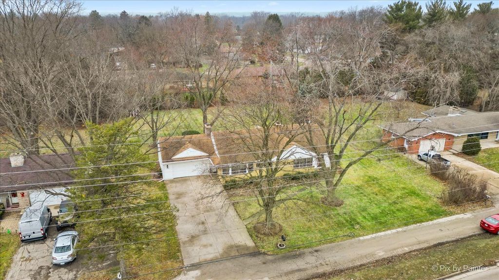 Expanded ranch with addition and partially finished attic offering over 2,200 sq ft of living space! Unfinished basement can add another 1,000 sf! Located in desirable Bonnie Dundee Terrace, just one block from Bonnie Dundee Golf Club. Within 1 mile to downtown East Dundee with various restaurants & year round activities/events & library. Minutes to main routes & I90 tollway! Well-maintained home situated on a spacious 1/2-acre+ lot with an attached 2-car heated garage and concrete driveway. Features include an enormous beamed family room with recessed lighting, fireplace, and access to the concrete patio. Dining room showcases hardwood floors, crown molding, a new light fixture, and a bay window with wall of windows. Kitchen with eating area offers recessed lighting, ceiling fan, white appliances / black dishwasher, reverse osmosis system, plus a convenient powder room nearby. A separate living room provides two bay window areas, fireplace, built-ins, ceiling fan, and access to the original front entry (2nd entrance). Hardwood floors throughout hallways and all three main-level bedrooms, each with ceiling fans. Completely updated in the last 3 years full bath features dark cabinetry, solid-surface vanity, modern lighting, porcelain flooring, and shower. Finished step-up attic offers potential for up to two additional bedrooms, two skylights, and abundant storage. Bright, partially finished basement includes laundry area, utility sink, and finished room with sink-ideal for a home salon, hobby room, or workspace. Perfect for a future full bathroom - stand alone shower is available to easily convert. Enjoy the expansive, private backyard-perfect for summer entertaining and outdoor activities. Home is set off on frontage road, so easy access to everything!