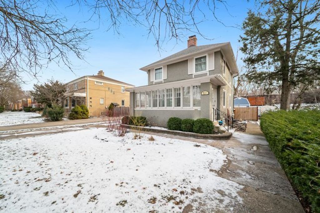 Welcome to your "Lake Street Paradise!" This charming 3-bedroom River Forest home perfectly balances classic character with functional living. Start your mornings on the expansive enclosed front porch, a versatile space featuring built-in storage and bathed in natural light. Inside, gleaming hardwood floors lead you through a sun-drenched living room anchored by a cozy fireplace-perfect for quiet evenings. Host holidays with ease in the formal dining room, supported by a spacious kitchen boasting stainless steel appliances and abundant cabinetry. Upstairs, find three generous bedrooms and a full bath, providing a peaceful retreat for the whole family. The outdoor space is a true highlight: enjoy summer afternoons reading on the private deck or playing in the large, fenced backyard. Located just steps from the forest preserve and local parks, this home offers the best of community living and nature. Home Updates: New roof - 2018, New AC - 2013, New boiler - 2022, New water heater - 2022, Shed - 2022 Sod - 2023, New sump pump system - 2023, Solar attic fan - 2024 New windows - 2024