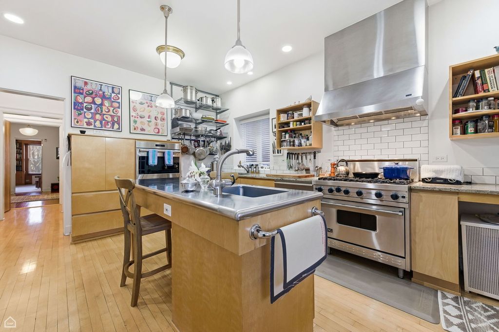New on Woodlawn Avenue. Located in the heart of the South Kenwood Historic Landmark District, this imposing and gracious three-story brick residence is a rare architectural offering. Originally designed and constructed in 1904 by noted architect George Beaumont for prominent Chicago industrialist and philanthropist Bernard E. Sunny, the home was thoughtfully and comprehensively updated in 1937 with striking Art Deco era finishes, seamlessly blending historic character with modern livability. The light-filled interior is ideally suited for today's lifestyle, featuring an open and expansive floor plan across all three upper levels. A welcoming entrance opens to a dramatic oval reception hall, anchored by a sweeping curved staircase leading to the second floor. From this impressive entry, gracious rooms flow into a grand living room, formal dining room, designer kitchen with butler's pantry, and a cheerful breakfast room overlooking a private backyard with patio and garden areas. A true standout is the library off the living room, complete with distinctive leather-clad walls and a hidden bar, perfect for entertaining. The second and third floors open on to substantial landings and each features three bedrooms, two full baths, and additional flexible rooms ideal for offices or dens. Each bedroom is generously sized and uniquely detailed, with special features such as a sun porch, private terrace, or semi-enclosed reading nook. Abundant closet space is found throughout the home. The full-height basement provides excellent recreation and work-out space along with ample storage. Adding exceptional value, the rear of the property includes a recently renovated two-story coach house featuring a three-car garage on the main level and a beautifully appointed one-bedroom apartment above, complete with new windows, central air conditioning, in-unit laundry and up-to-date kitchen and bath, ideal for guests, in-law living, a nanny suite, or rental income. Conveniently located near The University of Chicago campus (including the Lab Schools), Lake Shore Drive, Metra stations, and downtown bus routes, this remarkable home offers historic elegance, modern comfort, and outstanding accessibility.