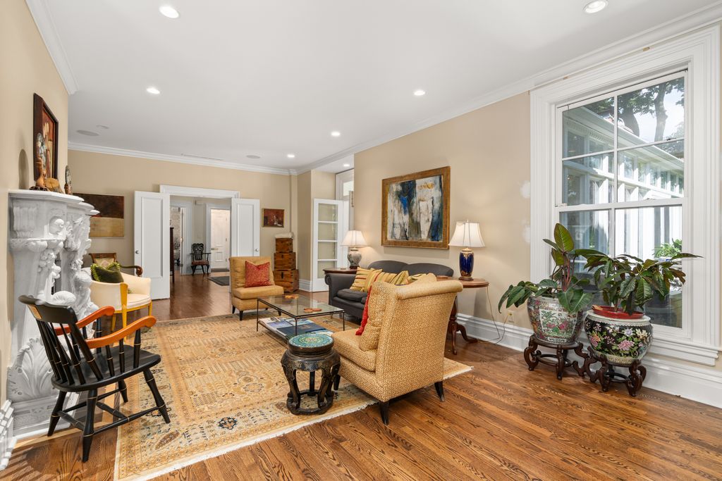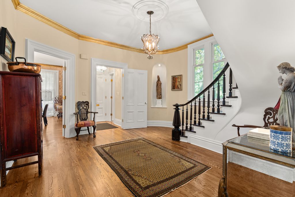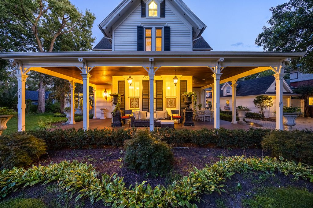 A rare offering of a piece of history located in the Historic First Division on an exceptionally generous lot with wide lawns in front and back, graceful statuary, and recent landscaping updates including lavish plantings of Japanese maples, dogwoods, redbuds, evergreens, and maples, on almost half an acre. Originally built in 1888 with all the charm of that era and magnificently expanded in the 1990s. This well loved home is one of the oldest structures in the quaint Village of Riverside known for curving streets and pastoral parkways. Featured on the Riverside Museum Walking Tour and known for its wraparound porch with decorative bracketed posts, this magnificent stately French Victorian is like no other with 10' - 20' ceiling heights. You will be in awe of the architectural detail, the impeccable condition and the elegance of this home. The majestic foyer leads to the formal living room and dining room both with fireplaces. From the dining room you will find a fabulous kitchen with beautiful cream custom cabinetry and beautiful quartz island and countertops with an adjacent warm and inviting breakfast room/library with fireplace and beautiful French doors that lead to the spectacular music/ballroom/family room with stunning terrazzo floor and breathtaking stained-glass ceiling. The conservatory/sunroom with heated marble floors presents picturesque views of the meticulously landscaped yard. Off the spacious second floor foyer you are greeted by the massive Primary Suite with fireplace, office, three walk-in cedar closets and private laundry, the second bedroom en suite and the third bedroom with fireplace adjacent to the full hallway bathroom. A huge walk in closet that can be converted back into a bedroom, an additional bedroom, full bath and a large cedar closet can be found on the third floor. The finished basement with a separate exterior entrance features a full second kitchen, laundry, half bath and storage. This beloved home is one of the original homes built in the Village of Riverside which is listed on the National Register of Historic Places. The unsurpassed natural beauty of greenery, wooded trees and the Des Plaines River, are unparalleled. The Village of Riverside is the product of the landscaping creativity and philosophy of the eminent landscape architects Frederick Law Olmsted and Calvert Vaux and is just a 7 minute walk along the serene views of the Des Plaines River. Riverside is located 9 miles west of the Chicago City Center and is easily accessible via Metra and the Interstate. Convenient to Midway, the Interstate and Brookfield Zoo.