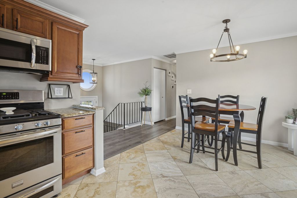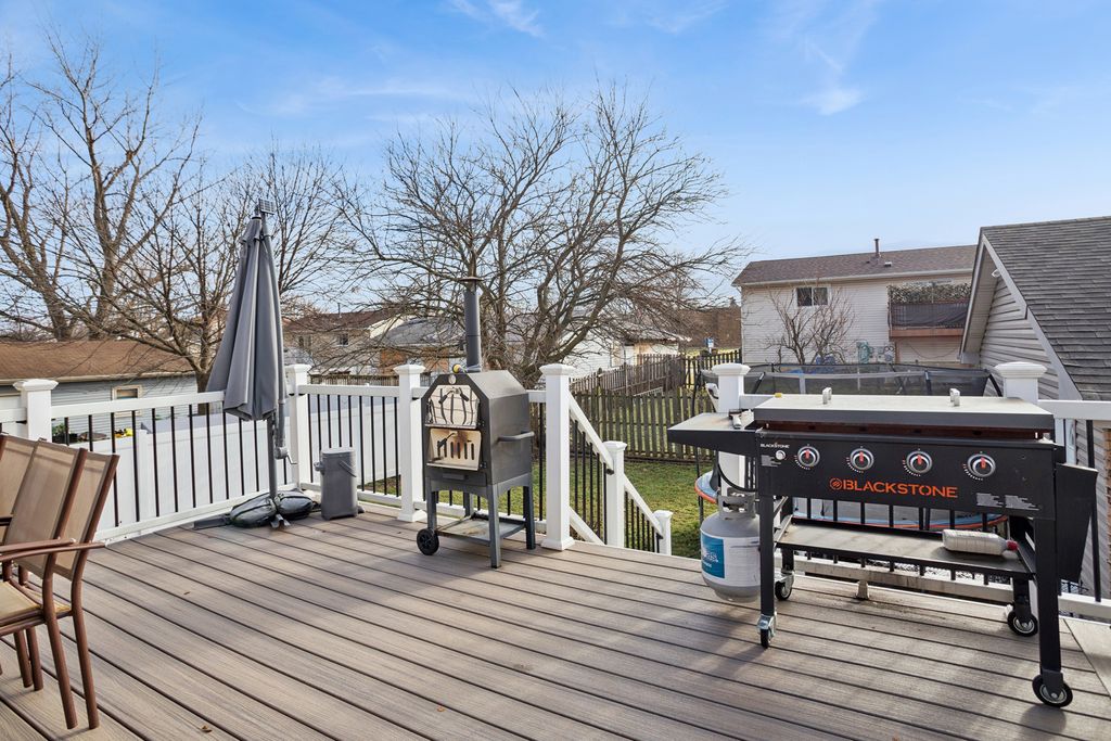 4-bedroom, 2 full bathroom raised ranch with a spacious layout. Upper level features laminate flooring and recessed lighting. Kitchen includes maple cabinetry, stainless steel appliances, granite countertops, and travertine tile flooring. Updated upper bathroom with Jacuzzi tub. Remodeled lower bathroom with a large shower. Finished lower level offers an oversized family room with recessed lighting and a 4th bedroom, plus a generous storage area. Newer maintenance-free Trex deck. Major updates include roof (13 yrs), siding (13 yrs), windows (10 yrs), and central air (5 yrs). Oversized 2.5-car detached garage with opener, long concrete driveway, and walking distance to grade school.