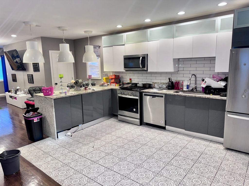 Beautiful and spacious 5 bedroom luxury home features recessed lighting, hardwood floors, central air and ceiling fans. The kitchen has finely crafted cabinets, garbage disposal, granite counters and stainless steel appliances. 3 full baths with Jacuzzi tubs. Master suite with bath. Separate living and dining rooms. Finished basement with bar and entertaining area. Washer & dryer hook-up. Gated yard for privacy with 3 car garage, deck and oversized porch. Easy access to public transportation, parks and shopping.