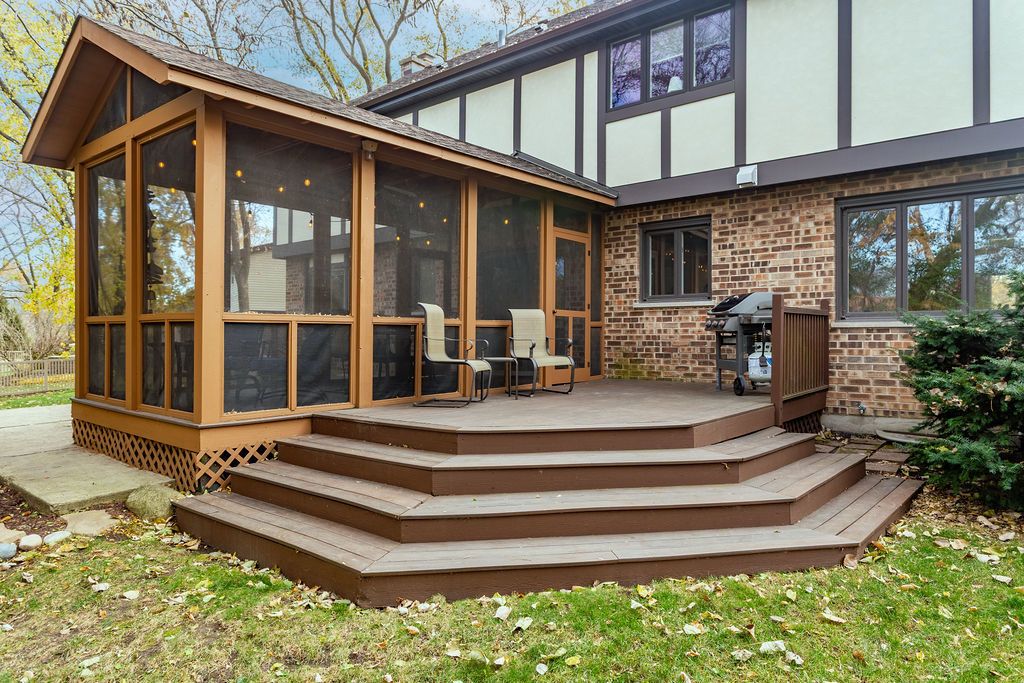 Picturesque setting on private oversized .42 acre wooded lot and cul-de-sac. Prime Downers Grove location offering the perfect blend of tranquility & convenience. Generous sized 4 Bedrooms ALL OFFERING WALK-IN CLOSETS, 2 1/2 Baths, Screened In Porch, 2 decks, partially finished full basement, 2 car attached garage. Architectural charm with modern updates throughout. No maintenance brick and Hardie Broad exterior. Gleaming hardwood flooring in living room with recessed lighting and crown molding. The hardwood flooring continues into the adjacent dining room with crown molding, chair rail, updated fixtures & lovely view of the tree lined yard. Updated kitchen with granite countertop, white cabinets, oversized sink, subway tiled backsplash, SS appliances, recessed lighting & eating area. Sliding glass door leads to large screened in porch-the perfect sanctuary to relax with your morning coffee enjoying nature or entertain with decks connect on both sides. The open flow continues into the massive family room featuring brick fireplace with wood mantle, crown molding, recessed lighting, ceiling fan, berber carpet, large bay window with window seat and built -in cabinetry provides a scenic view of the lovely backyard, built-in surround sound as-is. Powder room with tile flooring & pedestal sink. Six panel doors on main floor. Massive primary suite with sitting area/office/nursery, rare two large walk-in closets, ceiling fan & additional overhead lighting, private updated bathroom with wood tile flooring, raised height Corian vanity, ceramic tiled walk-in shower with glass shower door. Bedrooms 2-4 all offer generous space, ceiling fan or overhead lighting, neutral carpet and all have walk-in closets. Refreshed hallway bathroom with wood-look tile flooring, raised height white, marble countertop vanity, tub/shower surround. Convenient 2nd floor laundry chute and newer windows on 2nd floor. Lower level recreation room, oversized storage area or exercise room, great additional closet space, laundry area with utility sink and new sump pump. The backyard is the perfect setting for family fun or entertaining. The lovely screened in porch also accesses a wood deck and concrete patio for your guests to enjoy. Attached 2 car garage, concrete driveway with room to expand for additional spaces on the side and basketball hoop. This home offers a prime location with convenient access to major expressways I55 and I355, multiple Metra stations are just minutes away. Easy access to shopping & dining and Top Rated school district 66 & 99: Elizabeth Ide & Prairieview/Lakeview/Downers Grove South High School. This is a great home that you will have plenty of space for years to come as your family needs expand in a wonderful community. Well maintained and loved home, ready for your new memories. New 200AMP electrical panel, Lennox furnace-5 yrs, Roof-15 yrs, water heater-8yrs, New Sump Pump, 2nd floor windows & Hardie board no maintenance siding-8 yrs, Kitchen & bathrooms renovated 6yrs, Central AC age unknown-maintained, no issues, new attic insulation. Low unincorporated taxes and No HOA.