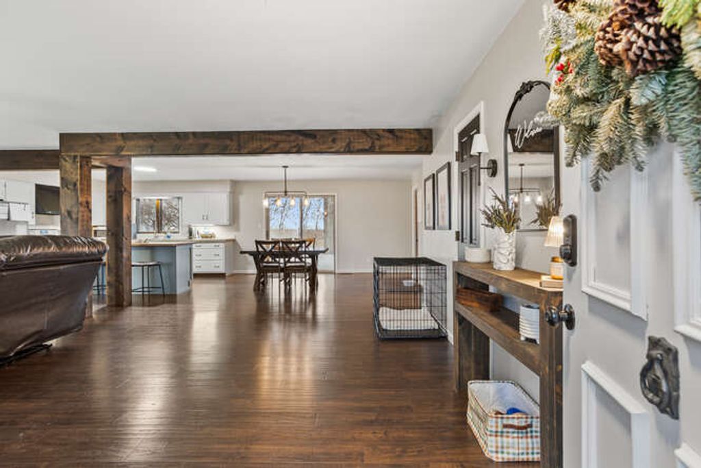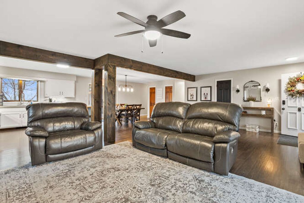 Enjoy the freedom of rural living on this .77 acre property. This 3 BR, 2 bath ranch features open floor plan with kitchen and living room giving plenty of space for entertaining. Eating area off the kitchen is the perfect space for a dining table. This home has been updated throughout, including all new wood floors throughout the main level, new carpet in the bedrooms. The bathrooms have each been updated with tile floors and showers, new vanities and fixtures. Escape to the large fenced in backyard (2024) through the sliders off the main living area or master bedroom sliding doors. You will find multiple places to enjoy time outside, on the trex deck (2022), tending the the raised garden beds, or by a fire. Large Master bedroom has double closets and sliders to the deck. Additional features of the home include CVAC system, Anderson windows with storms, completely sealed crawl space, water softener and water heater 2022, new well pump 2020, water filter system 2024.