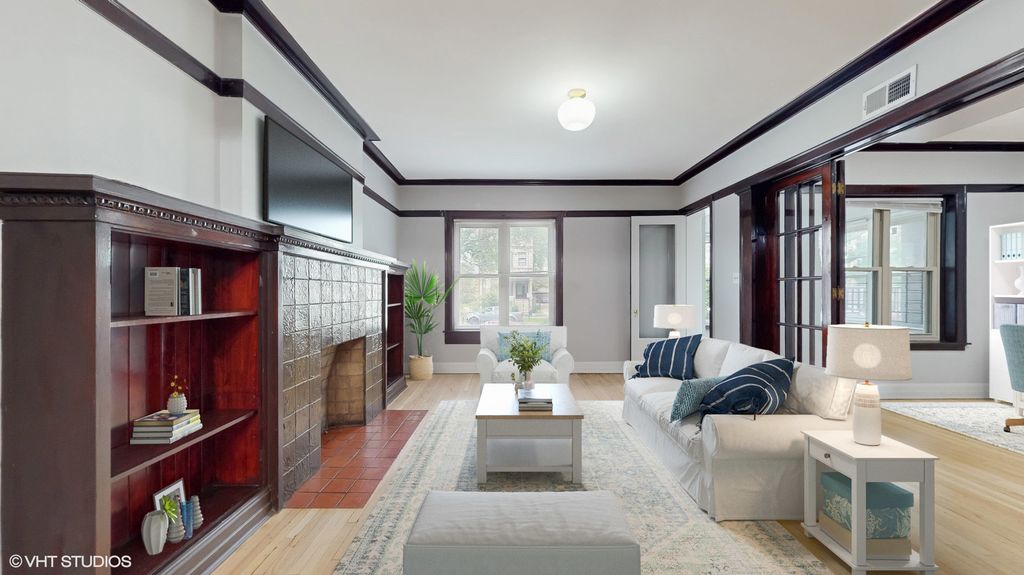 Move in Ready!! 3Bedroom, 2Bath plus den Updated condo with Gated Parking--approximately 2000 square feet of living space. Set in a beautiful red-brick building with a welcoming garden entry, this spacious apartment combines timeless architectural details with modern updates. The sun-filled living room features a decorative fireplace framed by custom built-ins and leads to a versatile den through classic French doors. If a fourth bedroom is desired, the space could easily be transformed to accommodate. The updated kitchen is a standout, featuring quartz countertops, stainless steel appliances, a beverage station, abundant cabinetry, and plenty of space for eat-in dining. Step right out onto a private deck - perfect for grilling, relaxing, or enjoying your morning coffee. The expansive primary bedroom easily accommodates a king-size bed with room for additional furnishings. It connects to an updated Jack-and-Jill bathroom. A second full bath, also updated, serves the additional bedrooms with style and functionality. The dining room is highlighted by a coffered ceiling and is the ideal entertaining space with direct connection to the kitchen. The condo is also appointed with a dedicated mudroom and a full laundry room. Other highlights include a bright sunroom, gated parking for one vehicle, and easy access to green spaces, shops, restaurants, and cultural amenities of Hyde Park and Bronzeville. Situated within approx 15 to minutes downtown and easy access to I-94