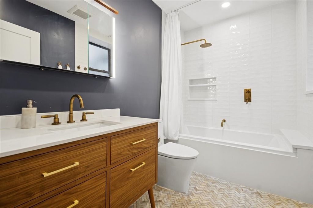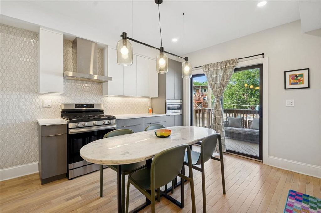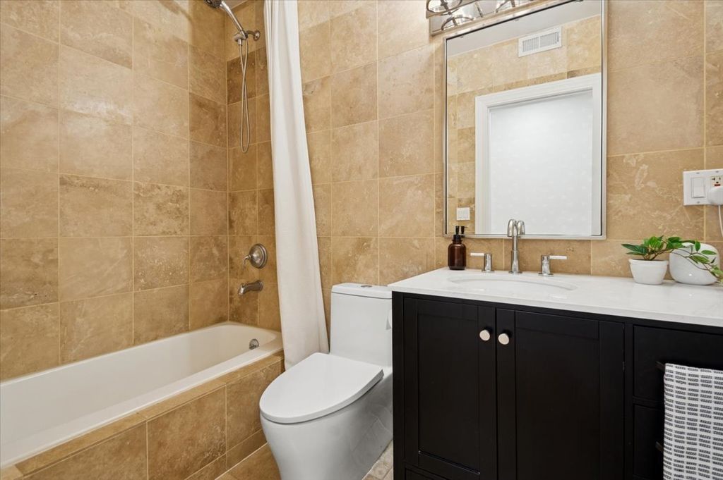 Welcome to this beautifully renovated condo in the heart of Edgewater, offering modern updates, inviting warmth, and an unbeatable location near the lake, transit, and Andersonville. The home features hardwood floors, recessed lighting, a gas fireplace with updated tile, and generous natural light throughout. In 2022, the kitchen underwent a full gut renovation and now showcases new cabinetry, countertops, flooring, designer tile backsplashes, updated lighting, a vented range hood, a new sink with water filtration, garbage disposal, and upgraded stainless steel appliances. A dividing wall was removed to create an open, airy flow perfect for everyday living and entertaining. The primary bathroom was also completely remodeled with new tile, tub, vanity, lighting, mirror/medicine cabinet, toilet, and a true exterior-vented exhaust fan. The guest bathroom was refreshed with a new vanity, mirror, lighting, and toilet. Both bedrooms feature newly built-out closets, and the home includes new lighting, wallpaper, and paint throughout. HVAC was replaced in 2022, and several major appliances-including the refrigerator and dishwasher-were updated the same year. Enjoy a large private deck off the kitchen, ideal for relaxing or hosting friends. Additional conveniences include in-unit laundry, extra basement storage, and two-car tandem parking. Located just moments from the Thorndale and Bryn Mawr Red Line stations, Hollywood Beach, Andersonville's boutiques and restaurants, and countless neighborhood conveniences, this home offers the perfect blend of comfort, style, and city living with a friendly community feel.