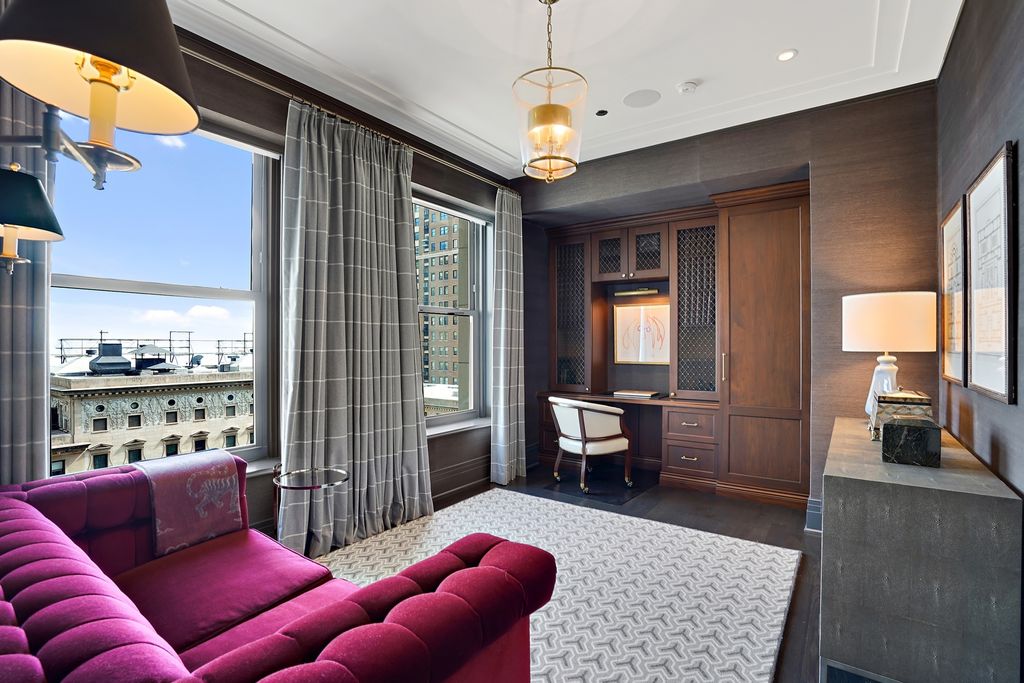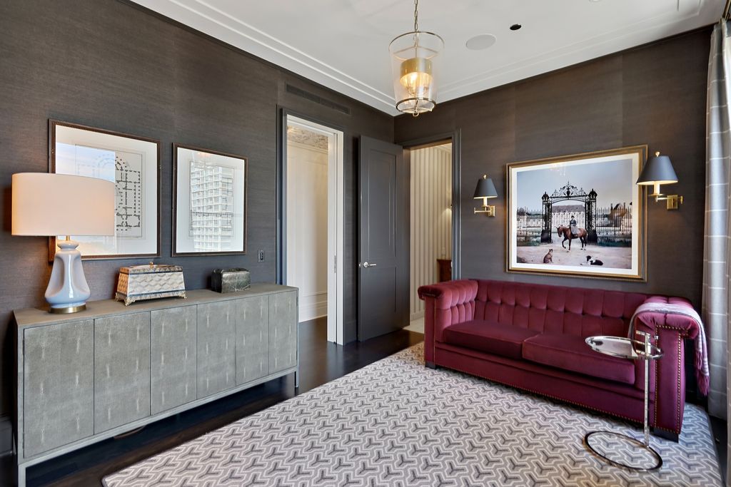 One of the most stunning and beautiful renovations at The Palmolive by widely regarded and notable designer Summer Thornton! This 2832 sq ft unit was completely renovated from wall to wall with the utmost attention to detail one can imagine. From hand painted wall coverings, sumptous draperies, ebony stained floors and a chef's kitchen outfitted with a La Cornue Range-this is the poshest apartment that one can only dream of living in! With north views to the lake and west views to Michigan Ave-sunlight glistens from both directions and provides a calming yet sophisticated environment. This 2 bed plus den 2.5 bath residence welcomes one with a stunning marble foyer that transitions into a welcoming living area outfitted with a beautiful bar area which transitions to the dining room and then on to a cozy library. Eat in kitchen with highest end of appliances makes this a cook's delight. Second bedroom currently outfitted as a den with ensuite bathroom with wonderful lake views as well. Finally a master bedroom, bathroom and closet one can peacefully retire to in a true sense of luxury! All this within 10 ft ceilings makes this one of the most desirable units at The Palmolive. Valet parking, 24 hour door service, onsite manager and onsite engineer plus access to The Beacon Club! 2 parking spaces included in the price.