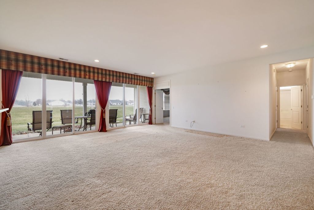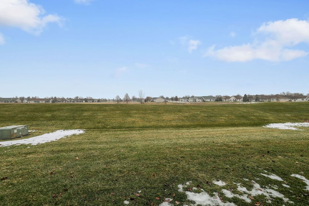 Welcome to this sought after Adler model in Del Webb Sun City, perfectly situated on a premium lot with stunning golf course views. This open floor plan offers 2 bedrooms plus a den, 2 full baths and a 2-car garage, designed for both comfort and entertaining. The spacious primary suite features a huge walk-in closet and a private bath with tub, separate shower, and double vanity. The large kitchen offers an island, abundant cabinetry, and a generous eating area with a sliding door leading to the covered patio, ideal for enjoying the peaceful views. Additional highlights include main-floor laundry with utility sink and storage cabinets. The roof is only a few years old. Enjoy resort-style living with access to Sun City's incredible amenities including restaurant, golf courses, clubhouse, fitness center, indoor & outdoor pools, walking trails, tennis & pickleball courts and countless clubs and activities-all in Huntley's most sought-after 55+ community