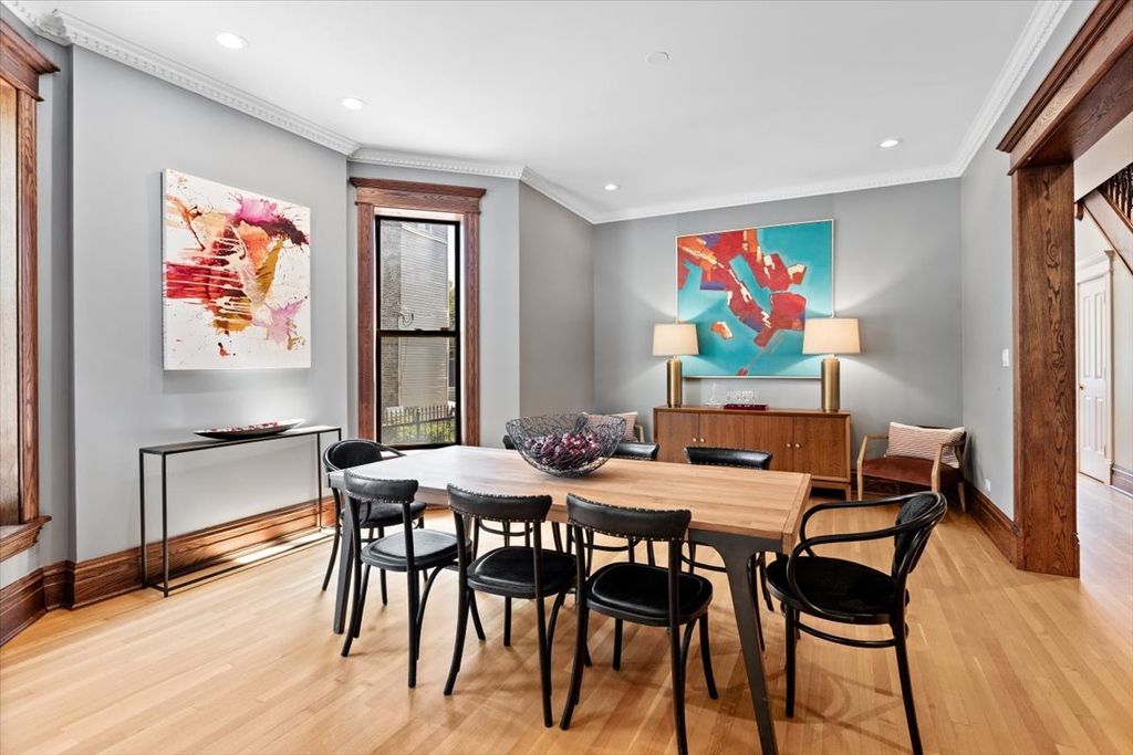 Stunning, massive graystone with a 2-unit coach house overlooking Humboldt Park. The main house was meticulously rehabbed and features fantastic quality and custom vintage inspired details throughout. Huge rooms with large bay windows, 4 separate living spaces, 5 bedrooms and 4.1 bathrooms with abundant storage. The facade is stunning, with ornate limestone details and huge windows looking into 200 acre Humboldt park. Great finish details, like quarter sawn oak floors, hard wood window sills and casings, soaring ceiling heights, and solid core doors with custom hardware. 3 fireplaces, including one in the huge primary suite. Next to the main residence is a wide side driveway. Reclaimed granite pavers from historic Maxwell Street create a stunning backdrop as you drive through the gated entry. There is comfortably room for 3+ cars, and one could build a carport or garage if they desired. At the back of the lot sits a 2 unit coach-house. This gorgeous red brick structure features 2 one-bedroom apartments and a full basement for storage. The apartments were recently rehabbed and have new kitchens and bathrooms, laundry and full HVAC. These provide great income. The Hi/Lo, Spinning J's, California Clipper, and lots of shopping is all right around the corner. Recently added bike lanes in front of the building reflect the city's ongoing commitment to creating a super pedestrian friendly park. Must see!