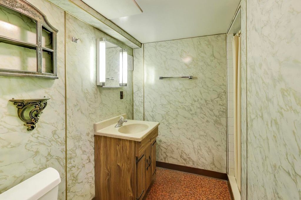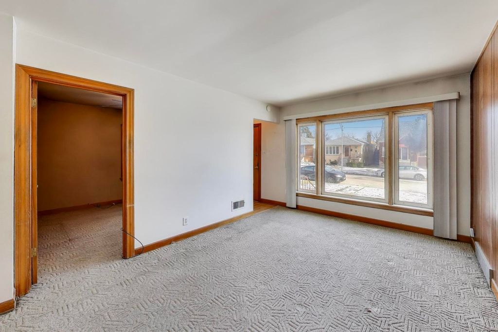 Classic brick bungalow situated on a quiet residential block in Garfield Ridge, offering 3 bedrooms and 2 full bathrooms with a practical layout and generous room sizes throughout. The main level features a bright living room with a large picture window, original wood trim, and a warm, timeless feel. The eat in kitchen provides ample cabinet and counter space and room for a dining table. Bedrooms are well sized with ceiling fans and ample closet storage, including a cedar lined closet. One bedroom features hardwood flooring, while others are carpeted. The main level bathroom is conveniently located off the hallway. The partially finished lower level offers a large open recreation area with wood paneled walls, a wood burning stove for supplemental heat, a second full bathroom with a walk in shower, a dedicated workshop area, and a separate laundry room with utility sink and storage. This level provides excellent flexibility for entertaining, hobbies, or additional living space. Outside, enjoy a spacious fenced yard with a concrete patio, side drive, and a detached garage. Solid brick construction, long time ownership, and well maintained mechanicals make this a great opportunity for a buyer looking to move in now or update over time. Conveniently located near parks, schools, shopping, Midway Airport, and easy access to expressways and transportation.