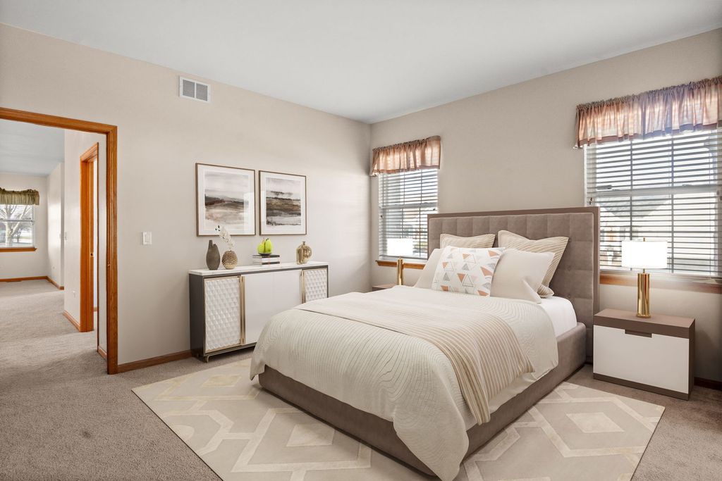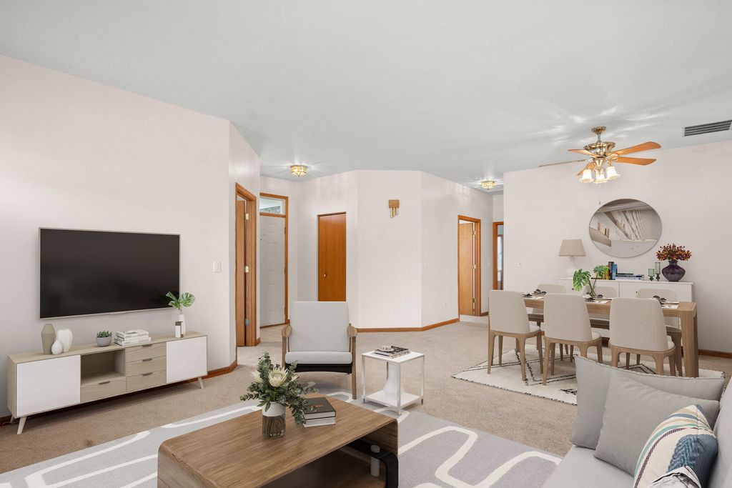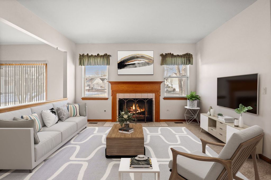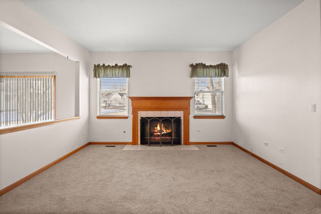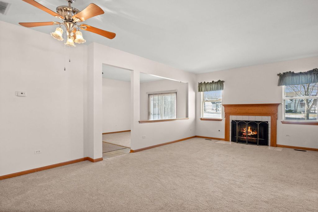 Welcome to this beautifully maintained ranch-style home in a highly desirable 55+ gated community! This spacious 3 bedroom, 2 bath residence offers comfortable single-level living with excellent amenities. The cozy living room features a charming fireplace, while the bright family room includes a sliding glass door that opens to an outdoor space. The large kitchen provides ample cabinetry and counter space, ideal for both cooking and hosting. The primary bedroom suite includes a private bath with both a soaking tub and separate shower, as well as a generous walk-in closet. The two additional bedrooms are generously sized, and the home features brand-new carpet throughout. Enjoy the convenience of a private entrance and easy access to I-55. This vibrant 55+ community offers resort-style amenities such as a clubhouse, swimming pool, fitness center, golf course, and much more, there is so much to do! Come experience the perfect blend of comfort, convenience, and community living!