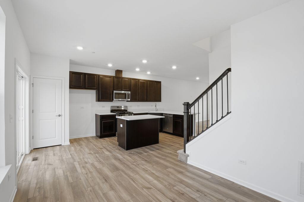 AVAILABLE NOW! Homesite #0604 Discover the Amherst, a refined three-story urban townhome offering three bedrooms, two full baths, and a half bath-perfectly tailored for modern living. The main level boasts a bright, open-concept layout that includes a spacious great room, elegant dining area, and a stunning kitchen with an oversized quartz island, 42" upper cabinets, and stainless steel appliances. Upstairs, enjoy a serene owner's suite featuring a walk-in closet and spa-like bath with dual white undermount bowls and a walk-in shower. Two additional bedrooms, and a full bathroom complete the upper level. The entry-level flex space provides versatile functionality - ideal as a home office, workout room, or media space. This home features luxury vinyl plank flooring, quartz countertops, LED lighting, and decorative railings elevate the aesthetic. *Photos are not this actual home* Welcome to Harvest View - Where Nature Meets Community. Harvest View is a thoughtfully designed townhome community nestled in the heart of West Dundee, featuring 4.6 acres of open space and scenic detention ponds that blend natural beauty with everyday living. Just moments away, the West Dundee Riverwalk stands as the crown jewel of the area. This beautifully landscaped riverside path features charming bridges, tranquil views, and a vibrant lineup of community events. More than just a walkway, the Riverwalk offers a lifestyle-inviting you to relax, connect, and immerse yourself in the neighborhood's picturesque waterfront setting. Outdoor enthusiasts will love living near Grafelman Park and Randall Oaks Park, where hiking trails, wildlife encounters, and green open spaces provide endless opportunities to explore and unwind. Whether you're seeking adventure or a peaceful retreat, West Dundee has something for everyone-making Harvest View the perfect place to call home.