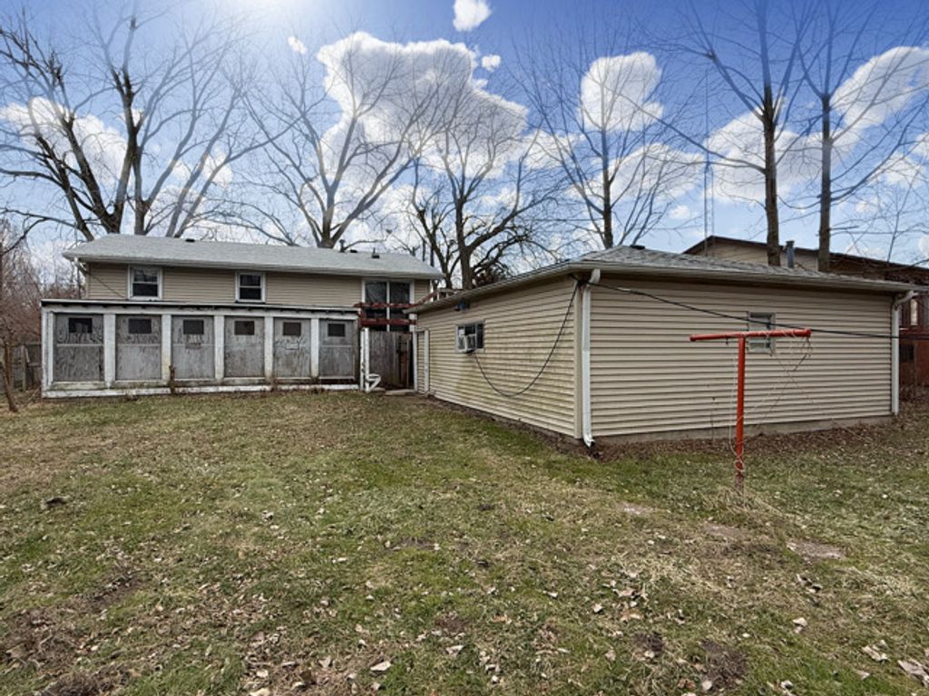 Opportunity awaits! This distressed split-level home sits on an expansive 74.5' x 228.9' lot offering exceptional space and potential for a buyer looking to build sweat equity or an investor seeking a value-add opportunity. The property is in need of updates and repairs, providing a blank canvas to bring your vision and personal touches to life. The exterior features a large two-car detached garage, a pole barn, and an additional storage shed, offering ample space for vehicles, workshop, toys/hobbies, extra storage, or an income opportunity. Property is strictly sold "AS IS".