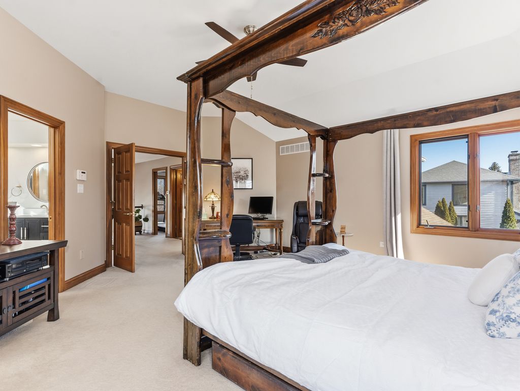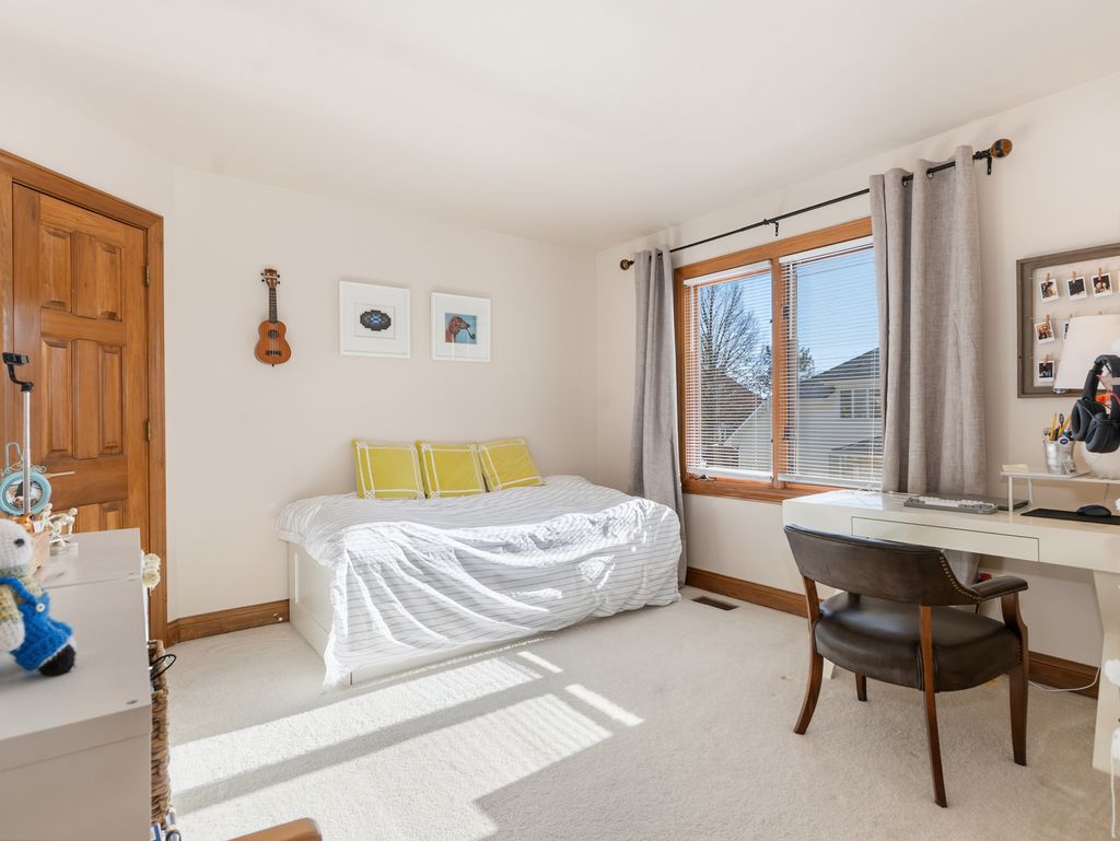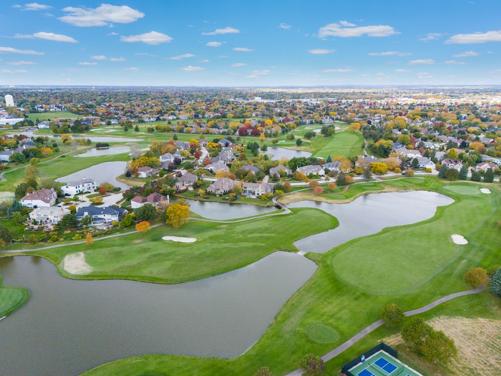 Welcome home to this immaculate 5-bedroom, 3.1-bath residence nestled on a quiet cul-de-sac in the highly sought-after White Eagle pool, golf, and clubhouse community. Thoughtfully updated and beautifully maintained, this home offers an ideal blend of elegance, comfort, and functionality. A true first-floor guest suite with a private, remodeled bath provides the perfect space for guests or multi-generational living. The freshly updated kitchen is bright and inviting, featuring volume ceilings, skylights, new stainless steel appliances, and a spacious dinette with a bay window that opens to the backyard-ideal for indoor-outdoor entertaining. The first-floor den showcases built-in bookshelves and pocket doors leading to the formal living room. Recent updates include fresh interior and exterior paint, updated light fixtures, new window treatments throughout, a new washer and dryer, and remodeled first-floor baths. Upstairs, the primary suite is complemented by a fully remodeled primary bath, along with an updated secondary bathroom. Outdoor living shines with new professional landscaping and an updated patio, creating a serene setting to enjoy the beautifully maintained yard. With timeless updates, flexible living spaces, and access to exceptional community amenities, this move-in-ready home is truly a standout. Home is located in highly acclaimed Naperville School District 204 schools. White Eagle Community offers 24 hour security patrol for peace of mind.