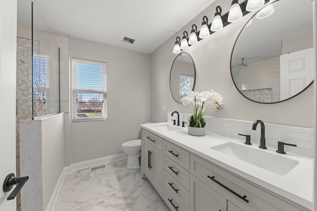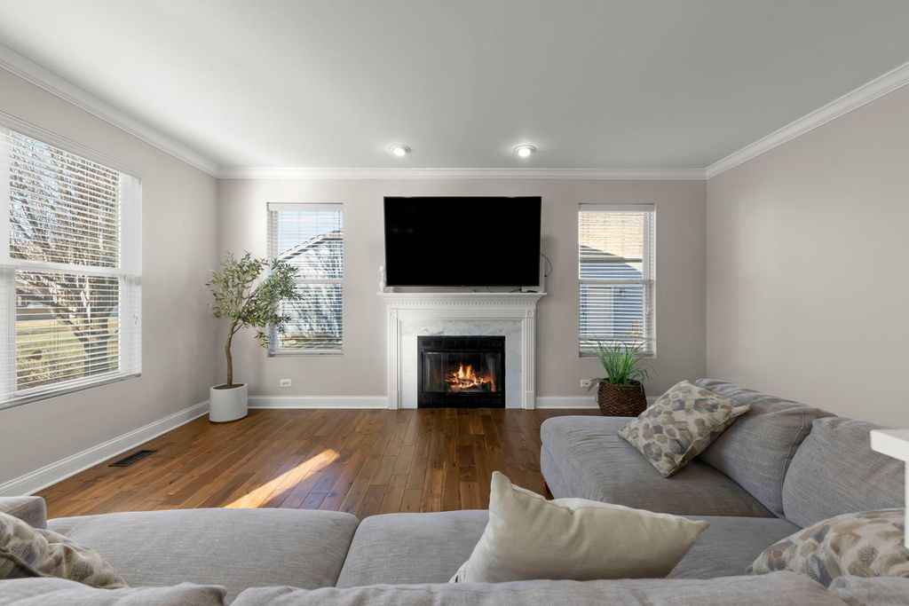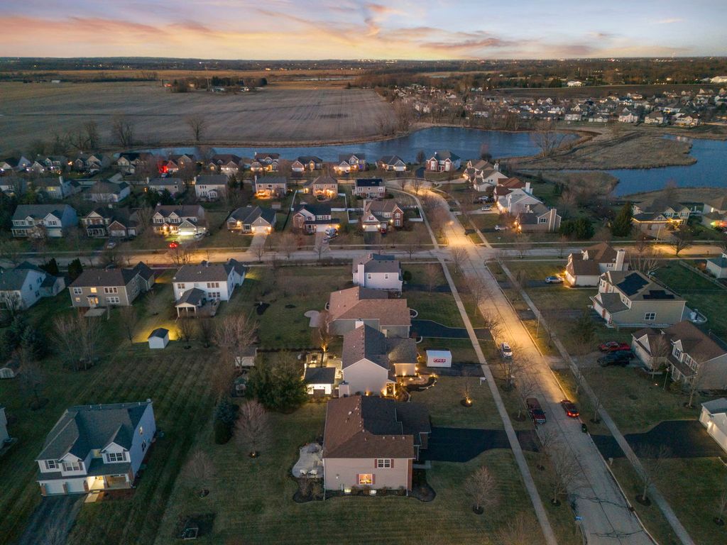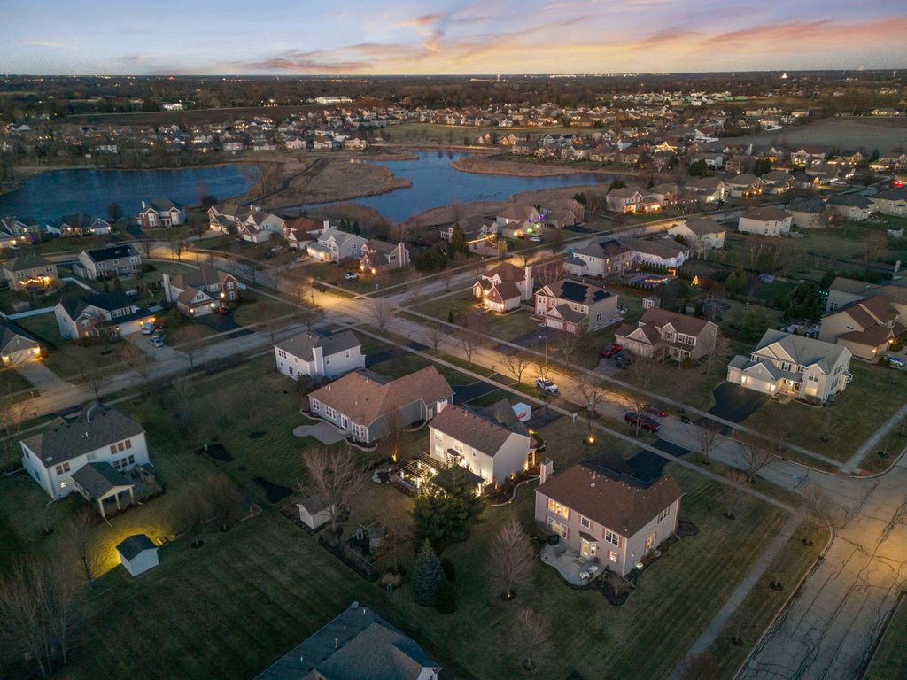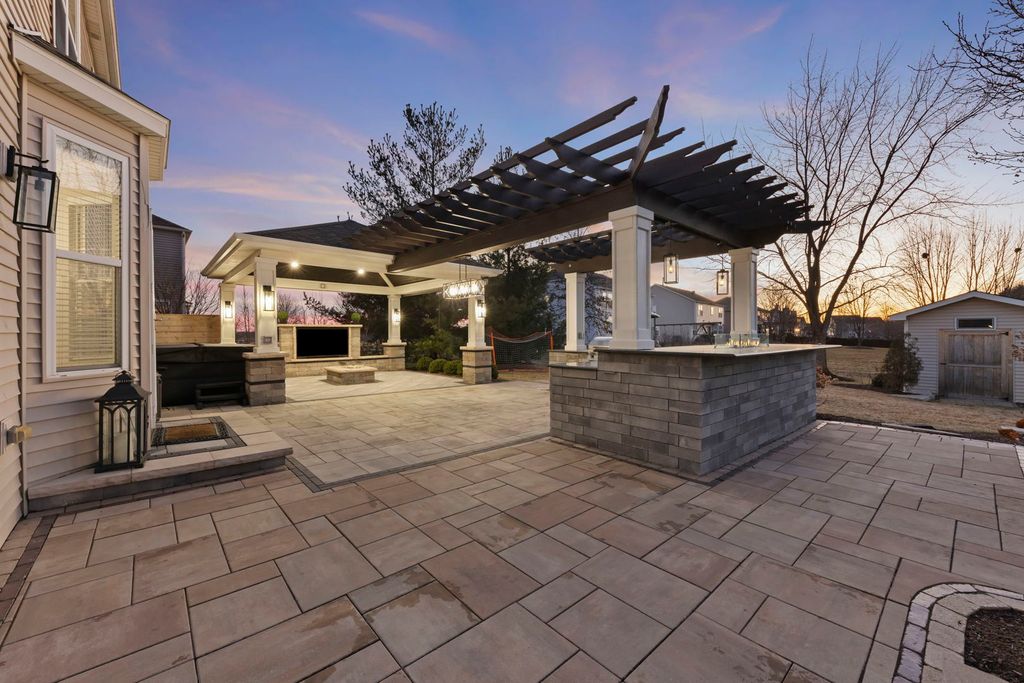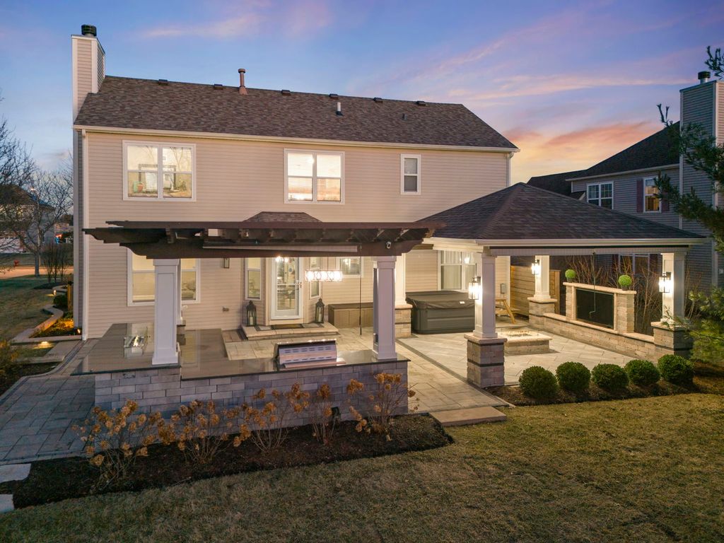 Stunning home with extensive professional landscaping. Enticing front porch has gorgeous front door with transom and opens to the 2-story foyer with turned staircase leading to the 2nd floor. Neutral paint with white trim and crown molding as well as gleaming hardwood flooring throughout the 1st floor and meticulous finishes and upgraded lighting throughout the entire home. The living room features large window and leads to the formal dining room with stepped tray ceiling, judge's paneling and custom chandelier. The kitchen has a pantry, granite counters with herringbone tile backsplash, refinished kitchen cabinetry, NEW stainless steel appliances (including NEW Bosch 500 series dishwasher) and bayed eating area with custom lighting and exterior door to the outdoor space. Relax in the open family room with fireplace, flanked by windows. The newly remodeled (2025) 1st floor laundry/mud room has NEW GE Profile washer and dryer, ceramic tile flooring, tile backsplash, storage cabinets, dressing bench with coat hooks and utility sink. Upstairs is a loft, perfect for media, office or play. The spacious master retreat features soaring vaulted ceiling, neutral paint and carpeting, lighted ceiling fan, walk-in closet and NEW stunning private bath (2025) with dual sink vanity and spa-quality walk-in shower with custom tile accents and dual showerheads. Secondary bedrooms offer neutral carpet/paint, oversized closets and easy access to the hall bath. One of the bedrooms has an attached 2nd floor space for your ideas (game room, private study, playroom, exercise, storage...)! The finished basement features a media room with bar, as well as a powder room. The oversized yard has extensive paver brick (800 sqft patio) and hardscape including the gorgeous outdoor kitchen with pergola, eating area plus snack bar, TV area, covered firepit, hot tub, NEW storage/potting shed (2023), privacy landscaping, low-voltage lighting and tons of room for outdoor games in the yard. NEW roof (2024), NEW furnace (2023), NEW garage heater and garage door (2023). Great location that is easy to expressway, shopping and dining. District 129 schools, too! Don't miss this one!