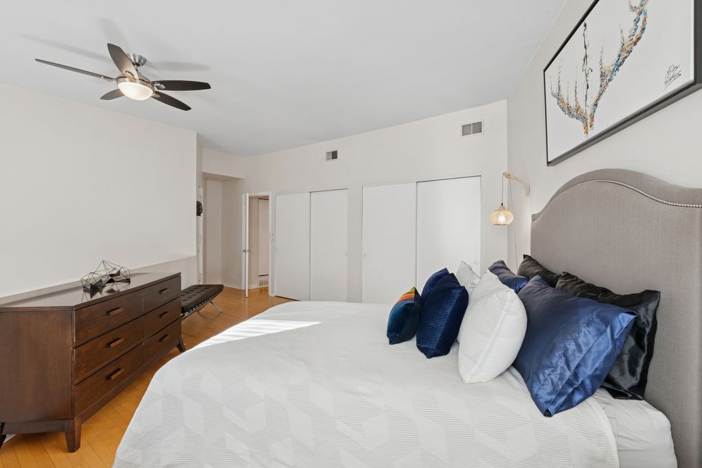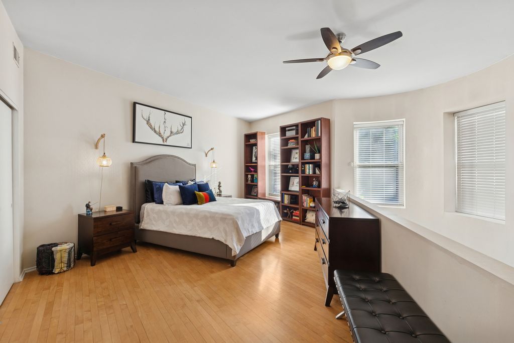 Please submit Highest and Best Offers due by Monday 1/19 at 5:00pm. This spacious two-bedroom, two-bath loft-style duplex-down delivers modern comfort and thoughtful design in a prime Northalsted / East Lakeview location between Halsted and Broadway. Hardwood floors throughout set the stage for a high-end kitchen featuring cherry cabinetry, granite countertops, stainless steel appliances, slow-close drawers, and an oversized island that seamlessly connects the space for cooking, dining, and entertaining. Vaulted ceilings and five front-facing windows flood the open living and dining area with natural light. Both generously sized bedrooms are located on the upper level and offer ample closet space and space for king-size beds. The upstairs bath is spa-inspired and uniquely configured with two private sink areas and an oversized walk-in shower with bench seating and body sprays, creating flexibility and privacy. The lower-level bath was refreshed in 2021 with new walk-in shower tile+fixtures, vanity, lighting, and a smart exhaust fan. Additional highlights include newer CENTRAL A/C and Gas-Forced Air Furnace, side-by-side in-unit laundry (washer 2025) in hallway between bedrooms, newer lighting fixtures (some with smart bulbs), abundant storage throughout, extra building storage unit, and a shared bike room. Enjoy outdoor space with a charming shared backyard and a private balcony just off the back door. Unbeatable walkability to Northalsted's most loved dining and nightlife, along with Lake Michigan, Whole Foods, Wrigley Field, and multiple transit options. Don't miss this opportunity, come check it out!