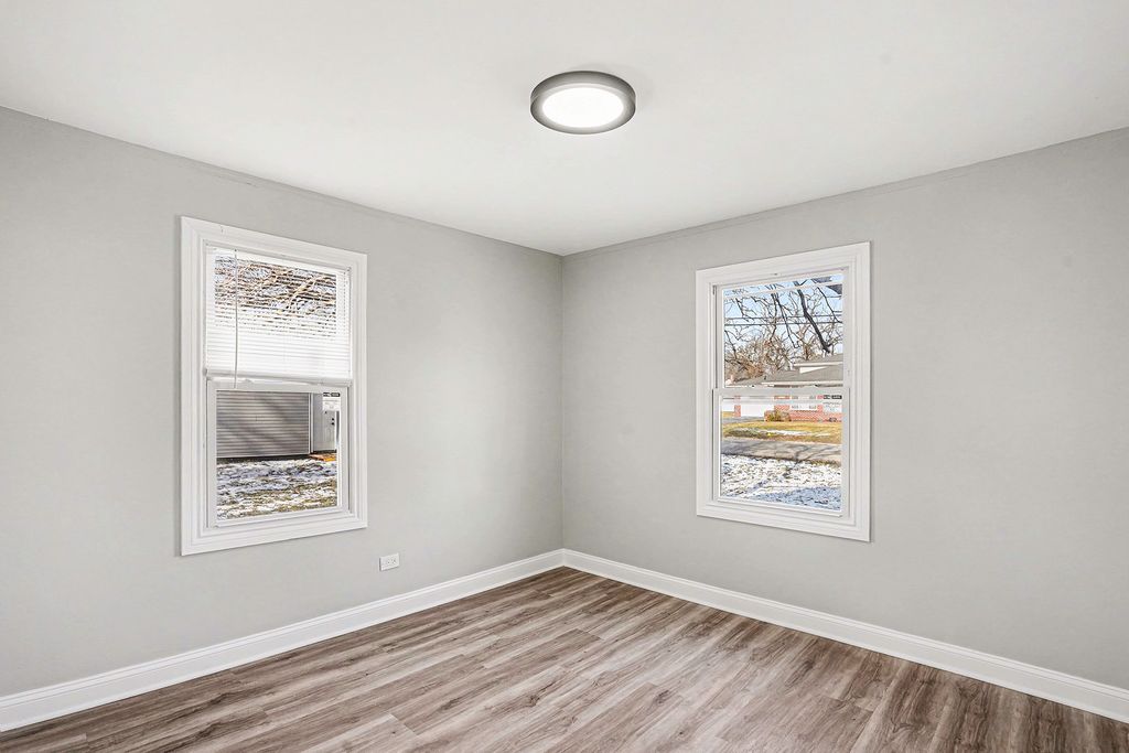 Welcome to this beautifully updated 4BR home in quiet Markham location. This home has an updated kitchen with quartz countertops and backsplash. New stainless steel appliances. Refinished hardwood flooring upstairs and LVP flooring on main level. Bathroom has been updated with modern tile design. Freshly painted in neutral color. New furnace and A/C. New roof and windows. Huge yard with 2 car detached garage. Shows well.