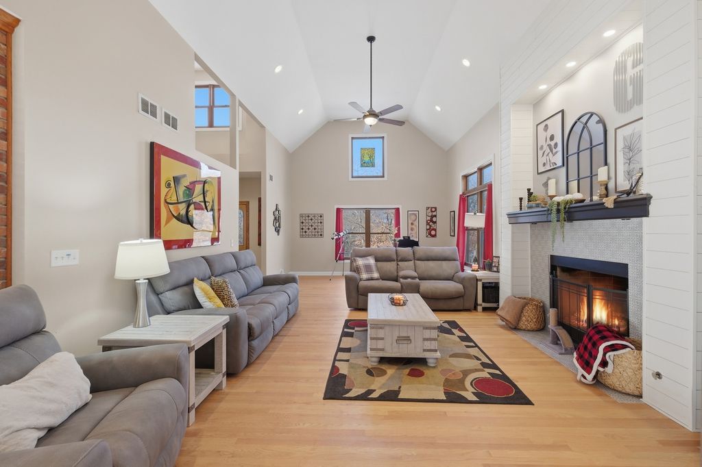Located within the gated Lost Lake community, this spacious, recently updated home offers three fully finished levels, three fireplaces, a finished three-car garage, overhead garage storage rack, n and a brand-new roof (June 2024), new furnace 2026. The main level features vaulted ceilings, a fireplace-centered family room, refinished white oak flooring, a remodeled laundry room, a private office / main floor bedroom, and an updated kitchen with granite countertops, an oversized island, and upgraded appliances including an LG ThinQ refrigerator with Craft IceTM. and GENERAC home generator The upper level showcases an expansive owner's suite with fireplace, sitting area, two walk-in closets, and a spa-inspired bath. The walk-out lower level adds in-floor heat, new luxury vinyl flooring, a remodeled full bath, an two additional bedrooms, and flexible living space ideal for extended stays or recreation. Highly sought after, prestigious Lost Lake offers a rare blend of resort-style amenities and natural surroundings, including a private lake with boating and fishing, beaches, clubhouse, tennis courts, walking paths, and abundant wildlife. Just beyond the gates, enjoy the Rock River, nearby state and local parks, and the preserved prairie of Nachusa Grasslands, all while remaining conveniently close to interstates and downtown Dixon.