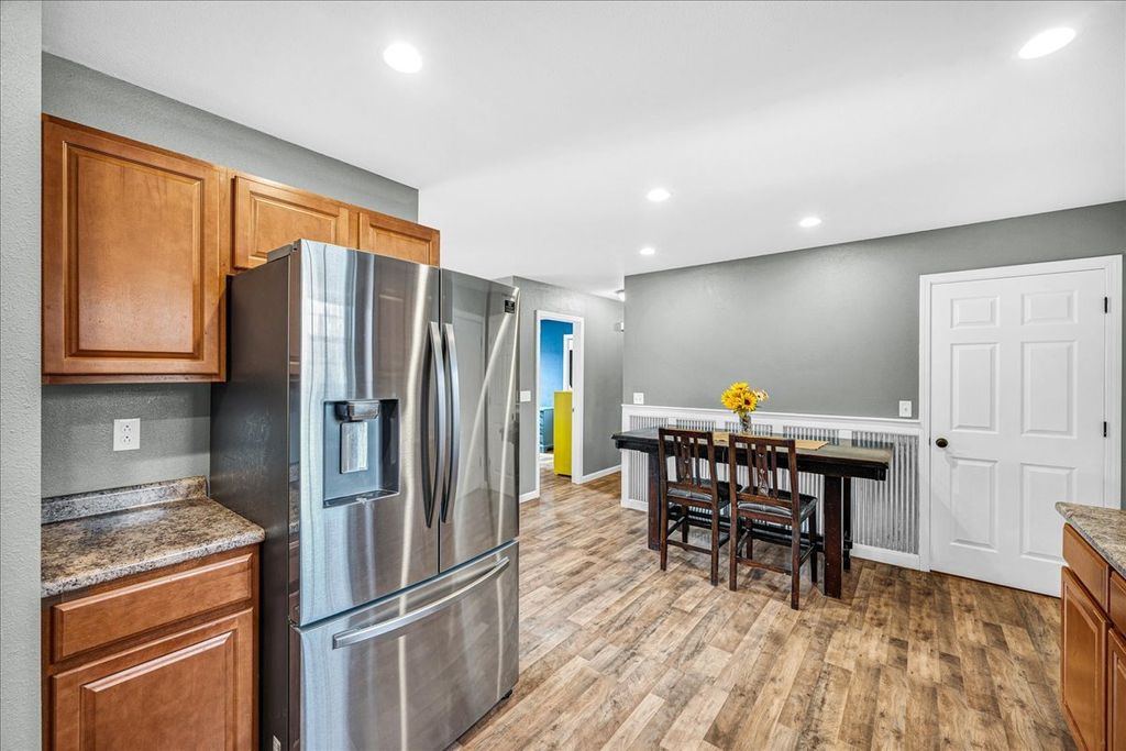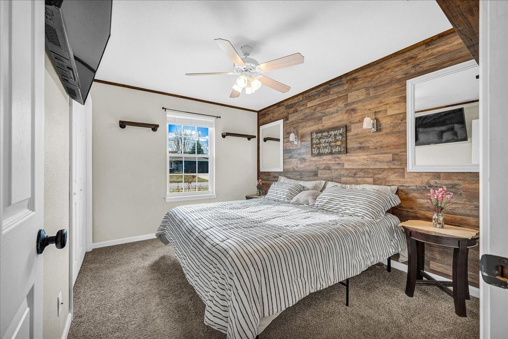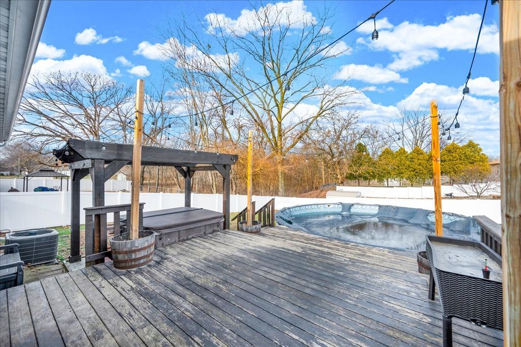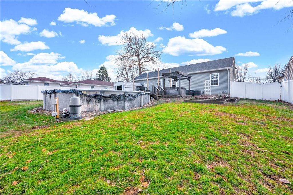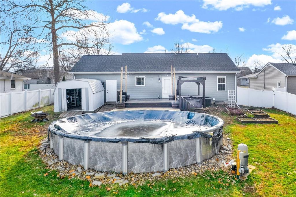 Step inside this beautifully maintained and thoughtfully improved home, offering flexible living space and true pride of ownership. The main level features three bedrooms and a full bathroom with updated flooring completed in 2018. The kitchen was updated in 2022 with a new sink and faucet, an added outlet for the garbage disposal and stainless steel kitchen appliances including the microwave, all of which remain with the home. Window blinds and ceiling fans throughout the home will stay and the mostly finished basement adds valuable living space and includes a custom theater room completed in 2018 featuring an InFocus projector, Bose Lifestyle surround sound system, built-in audio cabinet, and four reclining theater chairs, all of which will stay. A sliding door entry was added in 2018, along with a full basement bathroom and an additional room with an egress window, offering flexible use. Remaining building materials and tile intended to complete the basement will remain with the property. Additional mechanical and functional features include a sump pump with discharge system, sump pump equipment, a gas ventless wall heater, Bluetooth bathroom vent fan with touchscreen and the existing water heater. Outdoor upgrades include an above-ground pool installed in 2021 with timer and disconnect breaker, along with pool accessories including ladder, filter and select chemicals that will remain. The deck was built in 2019 and are complemented by a pergola and hot tub. The backyard also features a metal shed that will stay, raised garden beds with an established strawberry bed, and rose bushes in the front yard. A six-foot vinyl privacy fence with both double and single gates enhances privacy and functionality. The driveway was widened by three feet in 2020. The garage offers a built-in workbench, built-in shelving, loft storage, gas heater, garage door opener with transmitters and includes a snow blower that will remain with the property, along with a 65-inch television with mounting brackets and hardware. This well cared for home blends functional living space, entertainment features and outdoor amenities, making it ideal for enjoying evenings on the welcoming front porch and summer BBQs on the back deck!