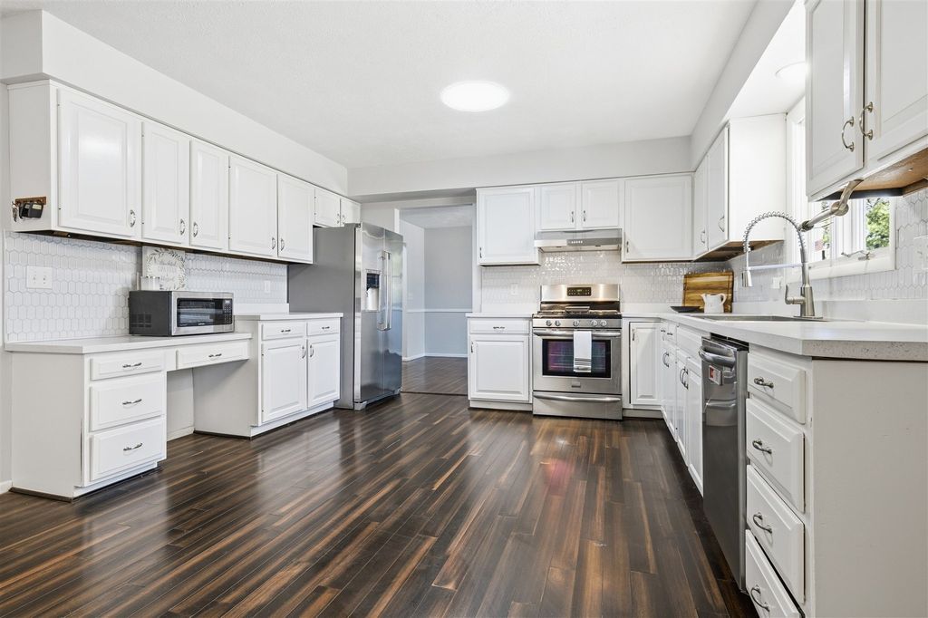 Welcome to this stunning 4-bedroom, 3-bathroom ranch-style home, filled with natural light from multiple sun tunnels throughout. The open-concept kitchen and living area is perfect for entertaining, featuring a beautifully refinished kitchen (2025) with stainless steel appliances, modern finishes, and a warm, inviting atmosphere. Enjoy year-round comfort in the 4-season patio, complete with its own new PTAC heating and cooling system (2022). Cozy up by the gas fireplace indoors, or gather with loved ones outside around the fire pit. The fully finished basement adds incredible versatility, offering a full bathroom, dedicated office space, and generous storage options. This charming brick and wood-siding ranch has been freshly painted inside (2025) and outside (2022), with a brand-new roof (2022). The backyard is a private retreat, shaded by mature trees and perfect for outdoor relaxation. Don't miss your chance to call this beautifully maintained home your own-schedule a showing today!