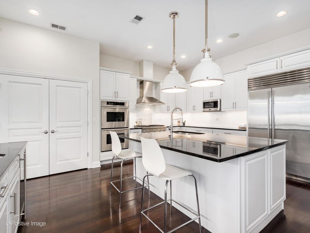 Luxury Penthouse Living in the Heart of Lincoln Park! Welcome to the Penthouse at 1359 W Fullerton - a truly exceptional 4-bedroom, 3-bathroom penthouse residence offering 3,200 square feet of single-level living with the privacy and exclusivity of direct elevator access to your home. This rare, full-floor gem boasts two expansive rooftop decks showcasing breathtaking skyline views! The thoughtfully designed layout features soaring ceilings, abundant natural light, and a seamless flow between living, dining, and kitchen spaces. The kitchen is designed to impress, featuring premium appliances including double ovens, sleek black stone countertops, custom white cabinetry, and an oversized island-ideal for cooking and entertaining. Retreat to the spacious primary suite complete with a spa-caliber bath and fully built-out walk-in closet. The generously sized library, featuring striking custom millwork, is currently utilized as a home office (and playroom) but can easily be enclosed to serve as a true fourth bedroom, if desired. Additional highlights include exquisite architectural details throughout - intricate crown molding and richly crafted door and window trim, rich dark hardwood floors, larger secondary bedrooms (one with ensuite bath) and ample storage throughout! TWO PRIVATE ROOFTOP decks with panoramic city views, TWO HEATED GARAGE parking spaces INCLUDED. Ideally located in vibrant Lincoln Park, with easy access to public transportation and steps to restaurants, shopping, parks, and top-rated schools ie OSCAR MAYER Elementary and Lincoln Park HS. This is penthouse perfection, where luxury meets lifestyle.