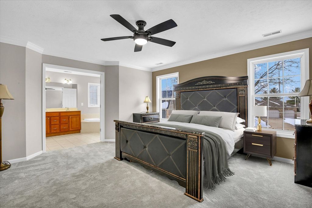 Located in the highly desirable Stone Creek subdivision in Urbana and positioned on a corner lot, this well-maintained home offers space, comfort, and thoughtful updates throughout. The home features 4 bedrooms and 2.5 bathrooms, with approximately 2,556 finished square feet of living space. A three-car garage provides excellent room for vehicles, storage, or hobby space. Inside, you'll find fresh paint and brand-new carpet, giving the home a clean, move-in-ready feel. The kitchen features appliances installed in 2016 and flows seamlessly into the main living areas, while the updated laundry space adds everyday convenience. Major mechanical improvements provide peace of mind, including a newer furnace and a roof replaced in September 2020. The property also includes an unfinished basement offering significant potential, bringing the total combined finished and unfinished space to approximately 3,847 square feet. The basement provides excellent flexibility for future finishing, recreation space, storage, or customization to suit a buyer's needs. Solar panels are leased. Additional lease and solar documentation are available for buyer review. This is a home where many of the major updates have already been completed, allowing new owners to move in and enjoy. The house has been pre-inspected.
