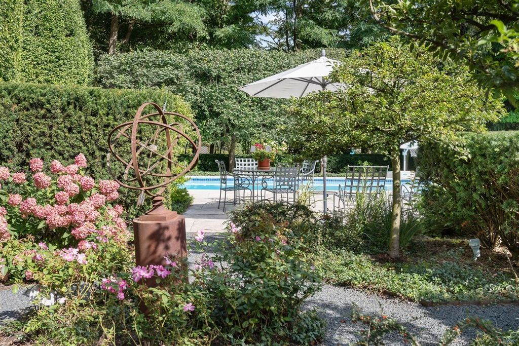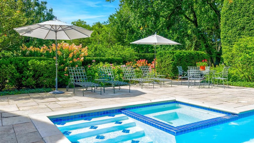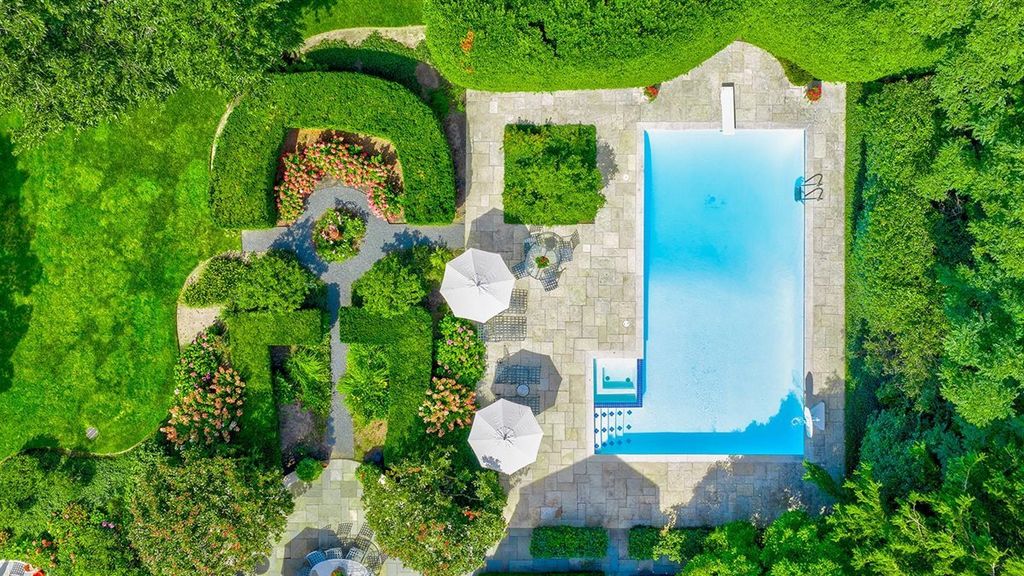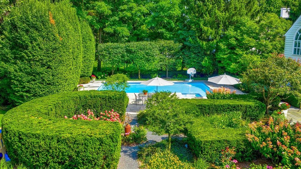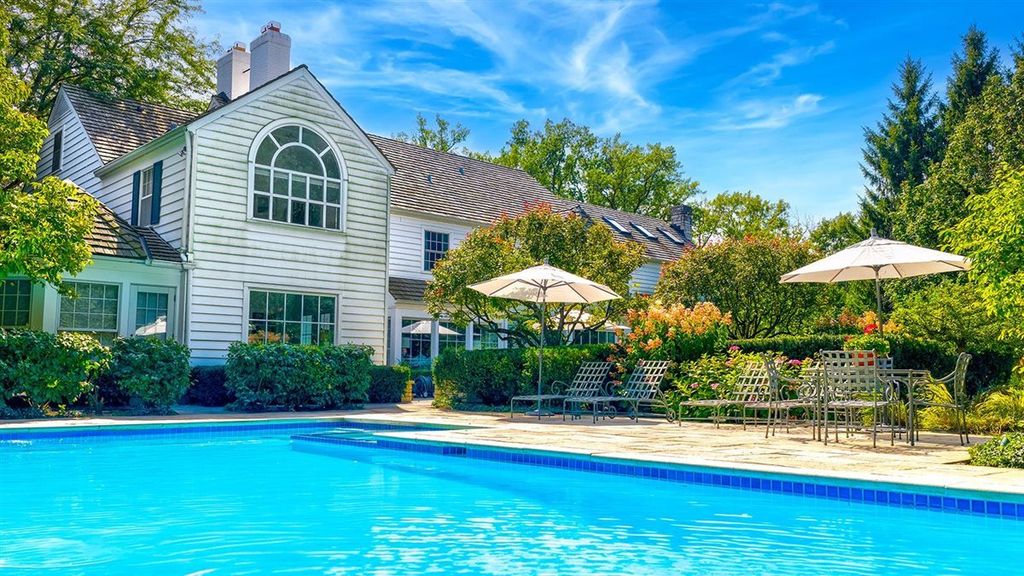 If My Best Friend's Wedding had a sequel...it would be filmed right here. This coastal Colonial estate set on 1.4 acres of lush, manicured grounds on premier Woodley Road offers the ultimate backdrop for timeless North Shore living. Elegant, welcoming, and effortlessly cinematic, it's the kind of home where every day feels like a scene straight out of a movie. A rare generational opportunity, this pristinely cared-for home features over 7,500 square feet of finished space & a floor plan that flows effortlessly from one sunlit room to the next. Wonderful features include a Chef's kitchen that opens to a great room, endless bluestone patios, vibrant gardens, and a sparkling pool oasis, creating an entertainer's dream. Step inside the gracious, light-filled foyer, where your eye is immediately drawn through the elegant living room picture window to the breathtaking private grounds creating instant tranquility. Formal dining room flows gracefully into the heart of the home: an inviting Chef's kitchen where classic design meets casual comfort w/quality custom cabinetry, massive island with seating for 5 and separate breakfast area. Great room accented with skylights and oversized windows naturally brings the outside in. Get cozy around the FP framed by fine built-ins creating the perfect place to unwind as this space is so inviting. To the other end of large first floor is the formal office, the ultimate private retreat with rich wood paneling & built-ins and opens to a cozy sitting room. Best yet, a spectacular sunroom with a full bath and hot tub solarium overlooking the beautiful outdoors. Expansive 2nd floor with five bedrooms including a luxury primary suite with a spacious bedroom, massive walk-in closet & crisp, sunlit white spa bath with dual vanities, soaking tub, and separate shower. 2 family size beds with ensuite neutral baths and the other 2 beds share a hall bath. Full 2nd floor laundry and awesome large play/rec space allows for many other options. Lofted finished space on 3rd level is now storage but can be studio/ 2nd office. The back staircase leads to spacious lower level with second rec room. Completing this exceptional home is a rare 4-car attached garage and an oversized mudroom/utility space waiting for your design touch. Surrounded by enchanted private gardens, sun-drenched interiors, and expansive bluestone patios, 145 Woodley Road captures the essence of quintessential North Shore living-so cinematic, it feels like a movie set... yet it's real, and waiting for you.