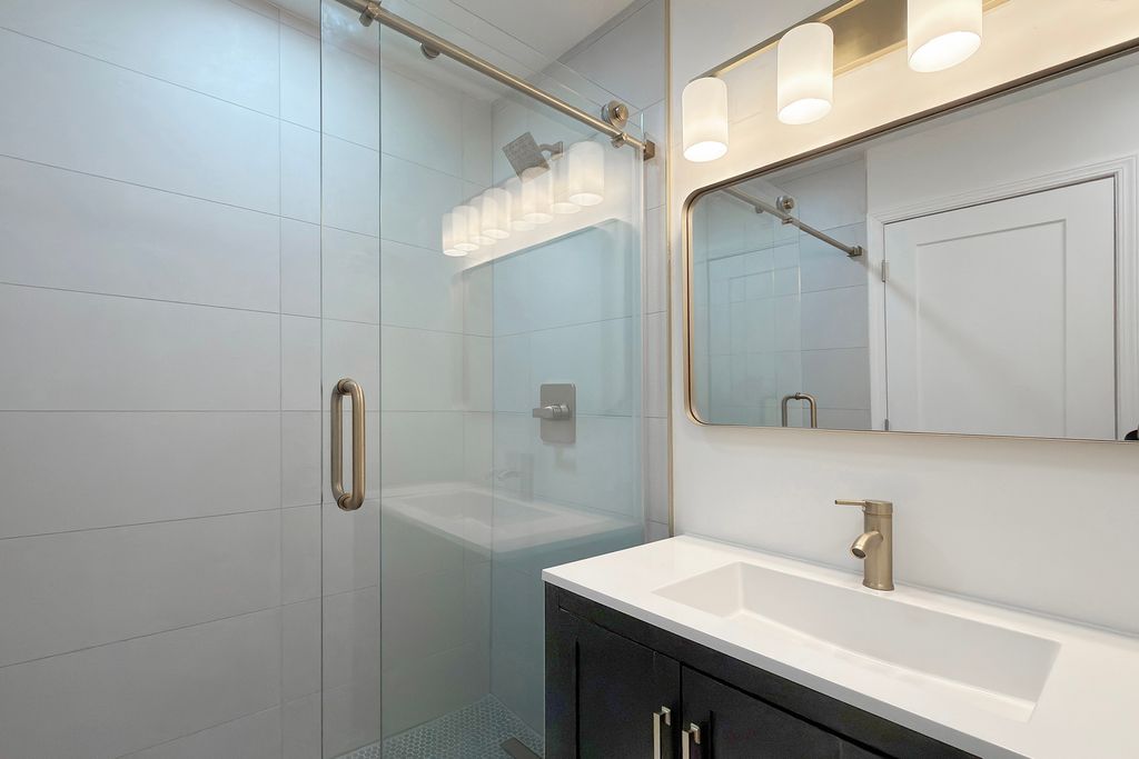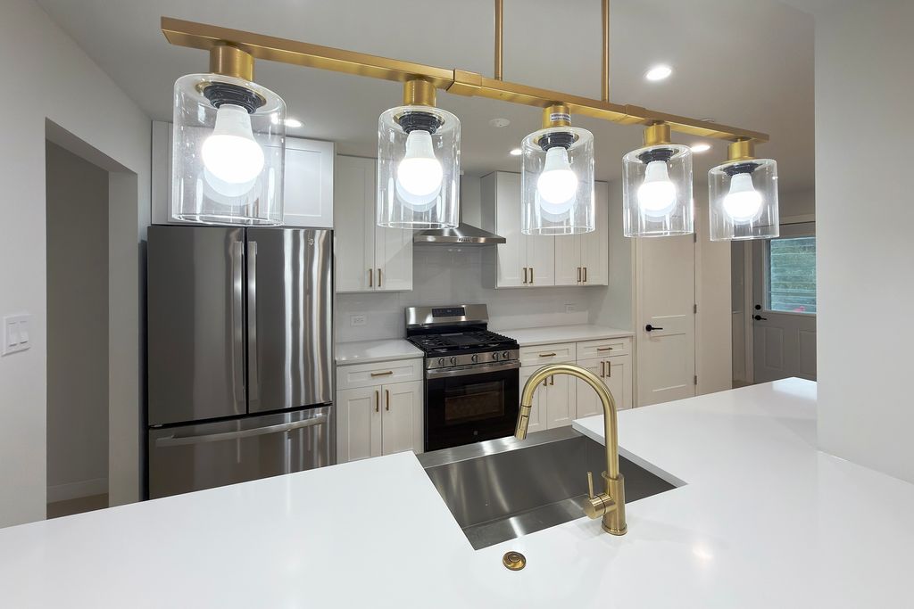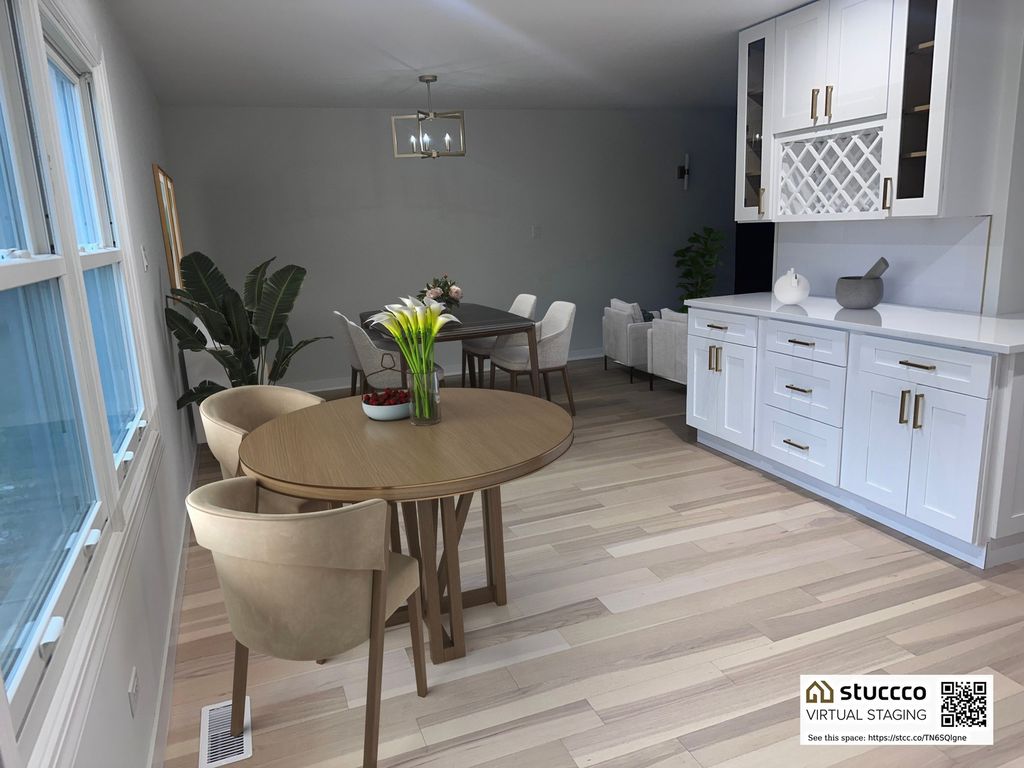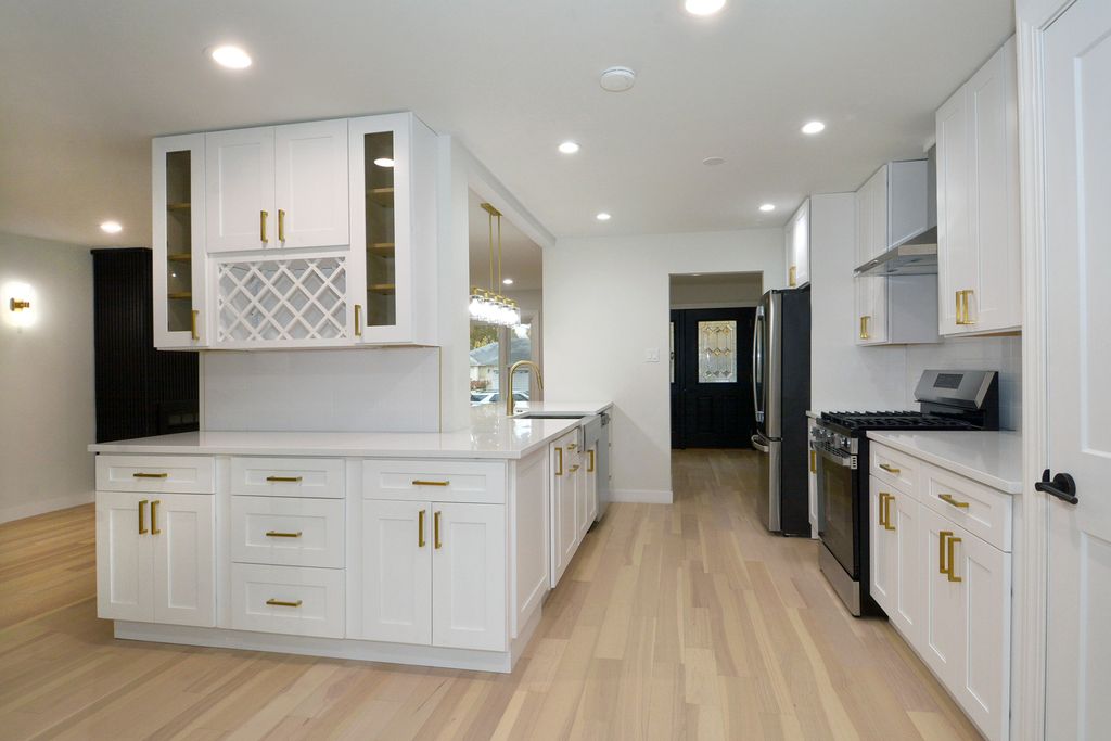 OPEN CONCEPT AT ITS FINEST! Totally turnkey this newly remodeled spacious 4 bedroom 3 full bath contemporary tri-level home on a large lot is just a few blocks to the elementary school and wonderful park. This home was thoughtfully and lovingly designed with high end finishes way beyond what you can see in the typical remodel turn around investment. It definitely could be your "forever" home. All you need to do is walk in the front door and you will know that this is your dream home. The first thing you will be struck by is the large formal foyer with high end white oak engineered hardwood flooring which has been installed at great expense throughout the entire home. The foyer then then opens into the amazing truly open living room, dining room and incredible kitchen with good sized eating area. The living room is light and bright featuring a big bay window (just waiting for custom cushion). There is recessed lighting and a very unique and creative redo of the woodburning fireplace framed by 2 designer brushed gold wall sconces. The dining room can accommodate a formal table that would easily fit 10. There is a gorgeous, brushed gold dining room fixture to set whatever mood you want to create. The kitchen is simply stunning keeping pace with the best of HGTV. Of course, there are matching top of the line matching GE stainless appliances, stainless vent hood over the stove, white quartz countertops with porcelain backsplash, stainless farm sink, brushed gold pulls on the soft close drawers and cabinets and an awesome brushed gold light fixture over the sink looking out into the living room. The quartz counter extends into the pass thru creating a great breakfast bar perfect for stools. You can't ask for more open than that! Upstairs you will find a very large primary bedroom with remodeled ensuite bath, a walk-in closet as well as another double closet There are 3 other guest bedrooms, a full remodeled hall bath with double sinks and porcelain tile. Of course, as was mentioned before there is white oak engineered hardwood flooring throughout the second floor. Last but not least is the ample family room with another gorgeous bathroom also with porcelain tile, recessed lighting, white oak engineered hardwood flooring and easy access through the sliding glass door to the huge backyard. There is also an entrance to the 2.5 car attached garage off the family room. One look is all it will take to make you want to move in tomorrow!