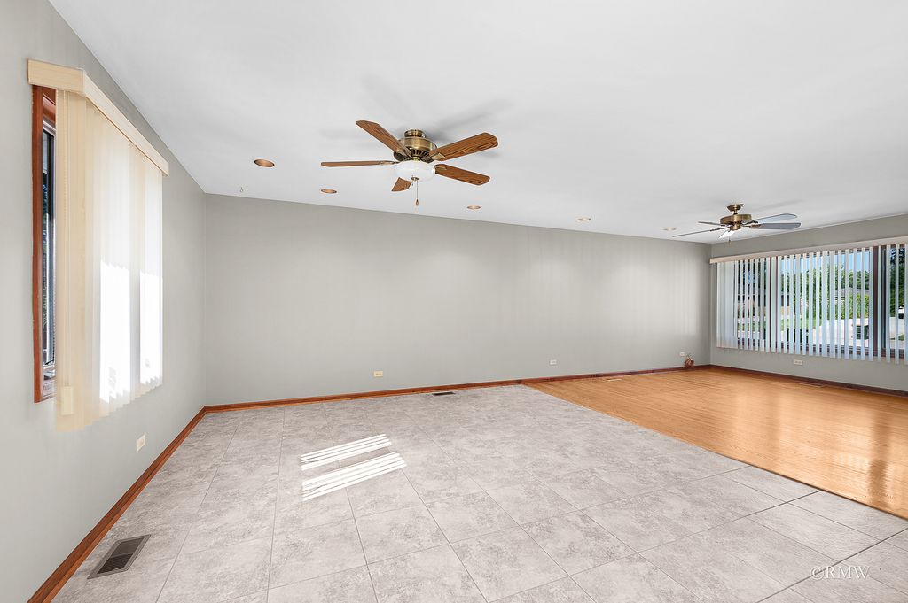 Single level living at its finest! Expansive 3-4BR, 1.1 BA ranch with finished full basement and large fenced yard. Open and airy floorplan with loads of windows and space for and entertaining. Hardwood flooring in living room, hallway and all 3 bedrooms. Kitchen with granite countertops and stainless appliances including Maytag refrig and stove with Bosch dishwasher. All BRs equipped with Pella windows with interior blinds, ceiling fans with lights, closets with mirrored closet doors, adjustable organizers. Finished full basement with possible 4th BR. Laundry /utility room with double basin utility sink, cabinets and countertop for folding. Newer high efficiency furnace. Brick and PVC coated vinyl maintenance free exterior. Additional insulation added. Expanded 2-1/2+ insulated garage for all your cars and toys. Home is in excellent condition, but is being sold AS IS. Great location. Walk to schools and parks. Near loads of shopping and minutes to Woodfield Mall, restaurants and expressways.
