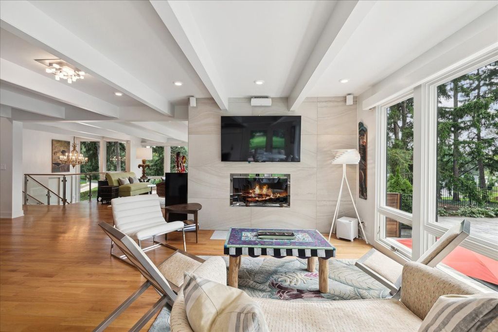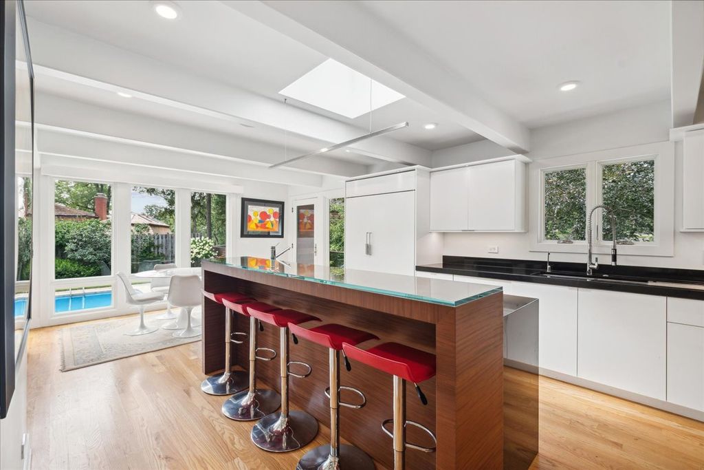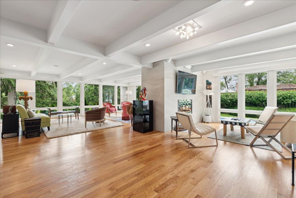Experience the perfect blend of old-world charm and modern luxury in this stunning mid-century modern residence, meticulously renovated and set on the historic grounds of the original Lasker Estate. This exceptional property features two iconic David Adler pool cabanas, offering a rare and meaningful connection to the past. Situated on a breathtaking 1.4-acre lot, the home incorporates the original steps from the Lasker mansion. A comprehensive $1.65M renovation completed in 2016 includes new windows, roof, mechanical systems, and sleek Hardie Board siding. The interior showcases a designer kitchen, five bedrooms, four luxurious new bathrooms, and multiple living areas ideal for both everyday living and entertaining. An elevator provides effortless convenience and accessibility throughout the home. The main level is highlighted by walls of windows with electric-powered blinds, framing picturesque views of the beautifully renovated in-ground pool. Outdoor amenities include a bluestone patio, separate pool shower, built-in grill, and an outdoor bar-perfect for entertaining. Freshly painted and in move-in condition, this is a once-in-a-lifetime opportunity to own a truly unique contemporary residence rich in history and modern sophistication.