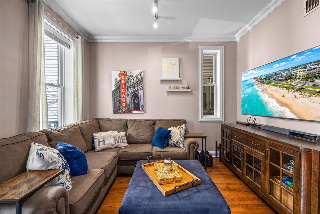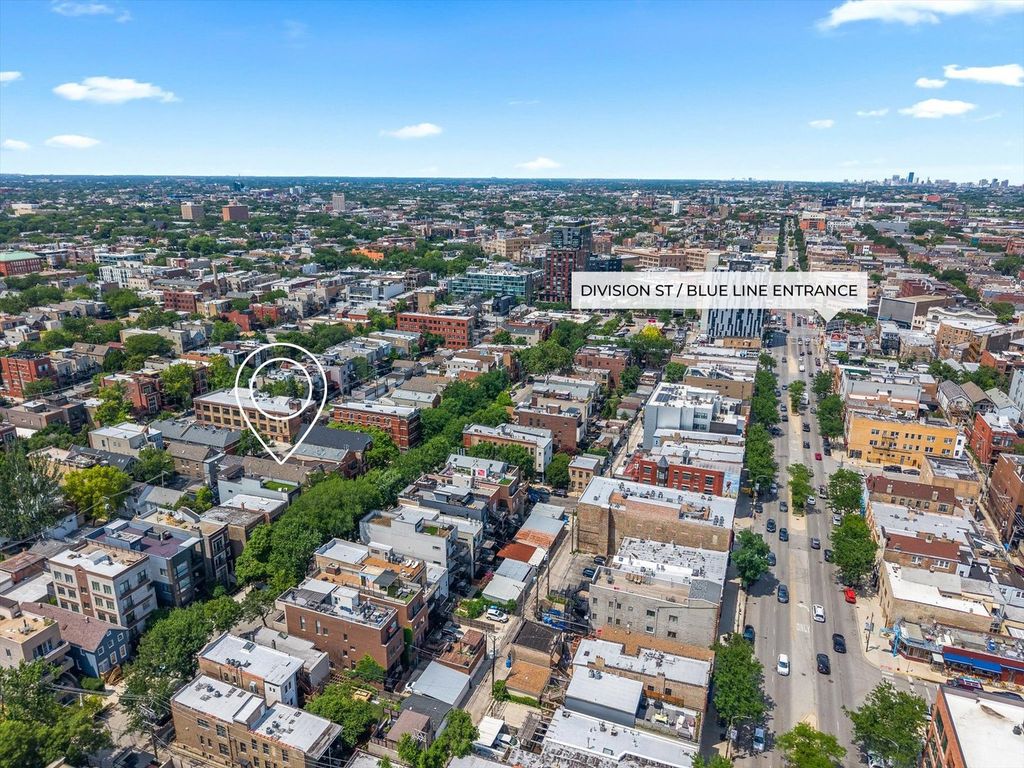 Move-in Ready condo, In one of Chicago's most sought-after neighborhoods. This 2-bathroom condo in a prime location steps from Wicker Park! Nestled on a quiet, tree-lined street in a charming vintage brick building, this home is moments from Division Street's popular shops, dining, nightlife, and offers easy access to downtown Chicago and the Blue Line for a convenient commute to O'Hare. The modern open plan layout features an updated kitchen with stainless steel appliances, granite countertops, and a large peninsula-perfect for entertaining. Hardwood floors run throughout the bright and spacious living area, filled with abundant natural light. The primary suite offers generous space with a wall-to-wall closet and a spa-like bathroom featuring a large walk-in shower. A versatile office/flex area outside the primary bedroom is ideal for working from home, a workout space, lounge, or secondary TV area. Additional highlights include in-unit washer and dryer, ample storage, and a private balcony for morning coffee or evening relaxation, plus access to a shared backyard. Dog-friendly building and one dedicated deeded parking space complete this exceptional offering. Recent updates include: refrigerator (2021), dishwasher (2021), microwave (2017), garbage disposal (2020), hot water tank (2018), washer/dryer (2022), Ring doorbell (2020), balcony/deck re-sealed (2021), turf backyard (2021), and roof replaced in 2025. Furnace and air conditioner have been professionally maintained annually.