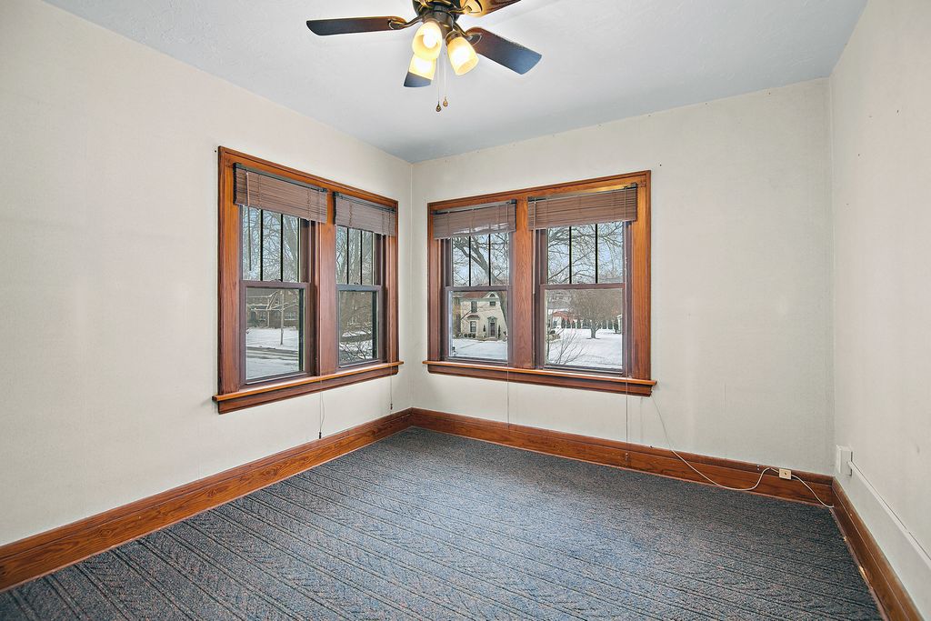 Back on the market and freshly updated, this charming 3-bedroom, 1.5-bath home is ideally located in the desirable Riverview neighborhood, just 2 blocks from Cobb Park. The exterior showcases a well-maintained stucco finish, a fenced front and backyard, and a detached 1.5-car garage. Enjoy peaceful mornings or relaxing evenings on the expansive front porch. Inside, the home retains its character with beautiful original wood trim, historic crown molding, and a cozy wood-burning fireplace. French doors open into a unique dining area with built-in shelving. As you explore the interior, you'll notice the freshly refinished flooring throughout the living room and dining room, along with updates to the upstairs bathroom and the screened-in front porch. The kitchen offers solid wood cabinetry, stainless steel appliances, and a conveniently located half bath. Upstairs, you'll find 3 spacious bedrooms, a full bathroom, a large landing, a laundry chute, and access to a partially finished attic. The full basement includes a laundry area, an additional shower, and some updated plumbing and electrical. With these thoughtful updates, this classic home is refreshed, full of character, and ready for its next owner. Schedule your private showing today!