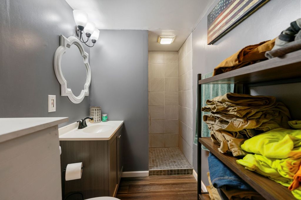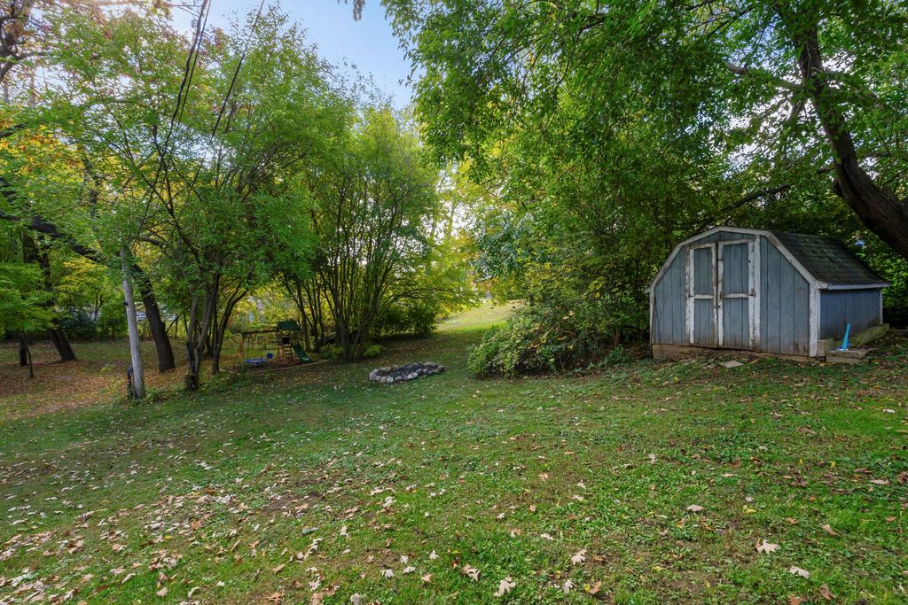 Well-maintained 3-bedroom ranch with full basement situated on a picturesque half-acre lot. The home features fresh interior paint and an updated kitchen complete with white cabinetry, glass tile backsplash, solid surface countertops, and ceramic tile flooring. The bright eat-in kitchen provides beautiful views of the peaceful backyard and direct access to a spacious deck for outdoor enjoyment. The family room and all bedrooms offer solid hardwood flooring. A recently remodeled bathroom highlights quality tile craftsmanship and contemporary finishes. The lot is partially cleared with mature trees at the rear, offering privacy and versatility. A large storage shed sits mid-property, and there is ample space for outdoor entertaining and recreation. The expanded driveway and side apron provide parking for up to five vehicles. The finished basement includes a sizable recreation room with bar area, full bath, utility space, and additional storage. Located in the desirable Johnsburg School District, this move-in ready home offers comfort, updates, and space inside and out.