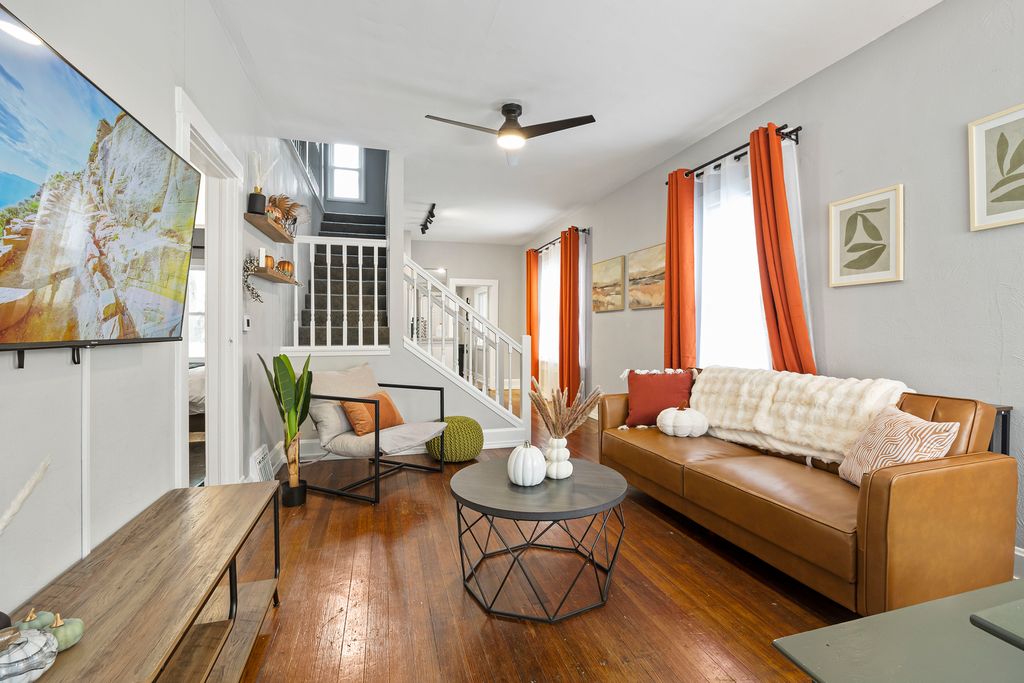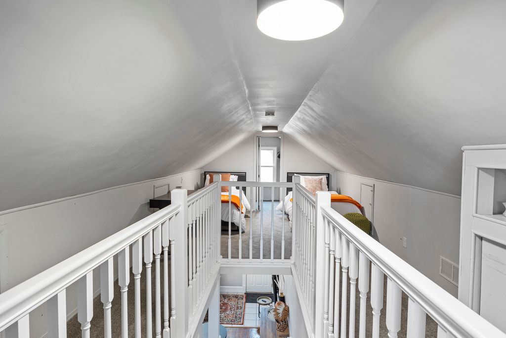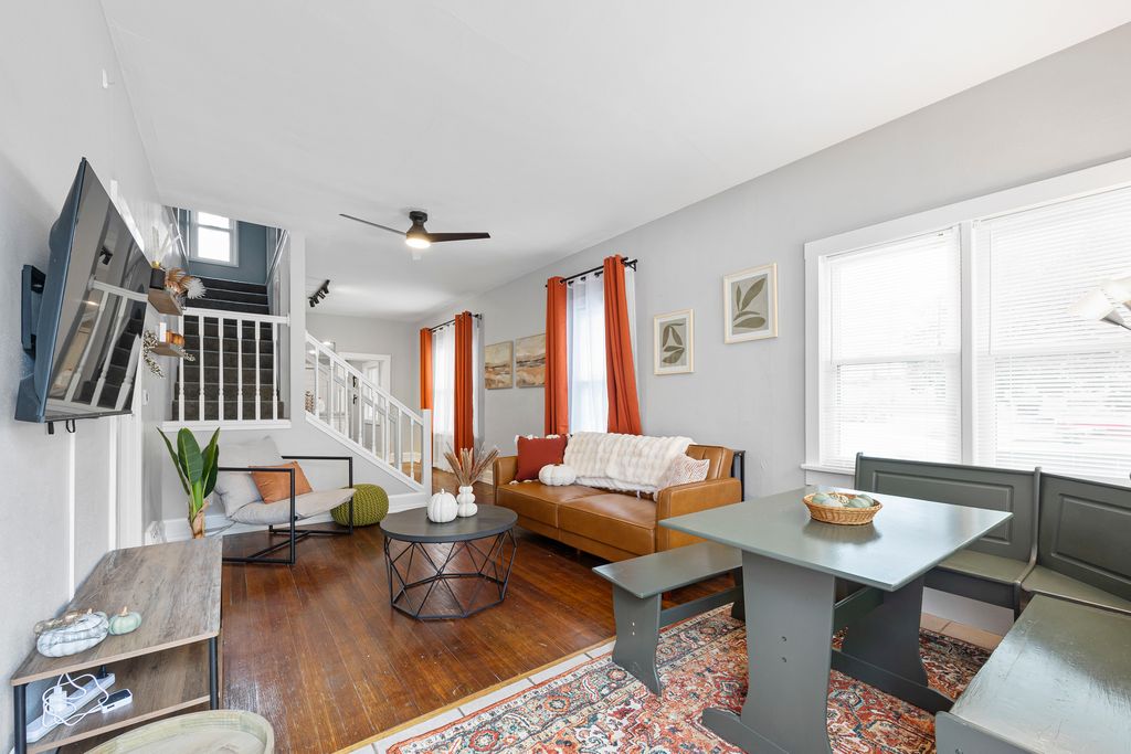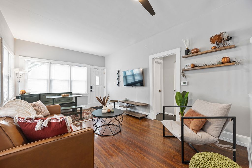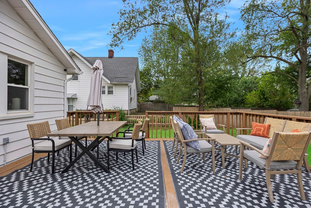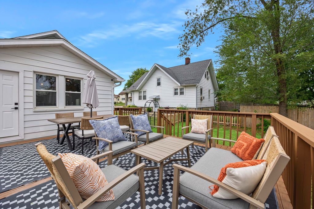 Welcome home to this beautifully updated bungalow-style residence that blends classic charm with modern comfort. A welcoming front porch sets the tone, offering the relaxed lifestyle bungalow homes are known for. Inside, you'll find a bright and inviting living space featuring original hardwood floors, neutral finishes, and abundant natural light. The heart of the home is the fully renovated kitchen, showcasing painted cabinetry, open shelving, stainless steel appliances, a spacious island, and durable luxury vinyl flooring designed for everyday use. The fully renovated bathroom offers fresh, modern finishes and thoughtful design. The main level features the primary bedroom and second bedroom, providing a functional and convenient layout, while the upper-level third bedroom serves as a cozy retreat with flexible use. Major updates provide peace of mind, including a new furnace and a new roof (2024). Step outside to enjoy the fenced-in backyard, ideal for pets, play, or outdoor gatherings, along with a spacious rear deck for relaxing or entertaining. A detached one-car garage adds convenience and additional storage. With classic bungalow charm, original hardwood floors, significant recent upgrades, and move-in-ready condition, this home offers the perfect blend of character, comfort, and modern living.