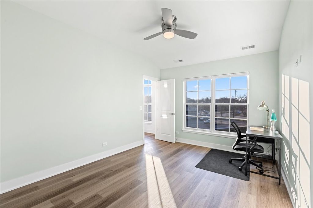 Newer condo building! This condo is only 1 year old! It has an Open floor plan with extra closet space, Quartz countertops throughout, rarely used Stainless steel appliances, full sized in-unit washer/dryer, oversized kitchen island with a Stainless steel kitchen sink, large private covered balcony, Beautiful Luxury Vinyl floors throughout. Pella windows and doors. Kitchen has 42" upper cabinets, soft close doors, tiled backsplash and under cabinet lighting. Baths have tiled floors, tiled shower walls with frameless glass shower doors. Touchscreen Intercom system with an extra storage closet And it even has a Heated Garage! Exterior Security cameras. On-site EV car chargers. Quiet yet convenient location and only 4 blocks to Metra Station, just 5 blocks to downtown Barrington shopping and restaurants. Close to schools and playgrounds!