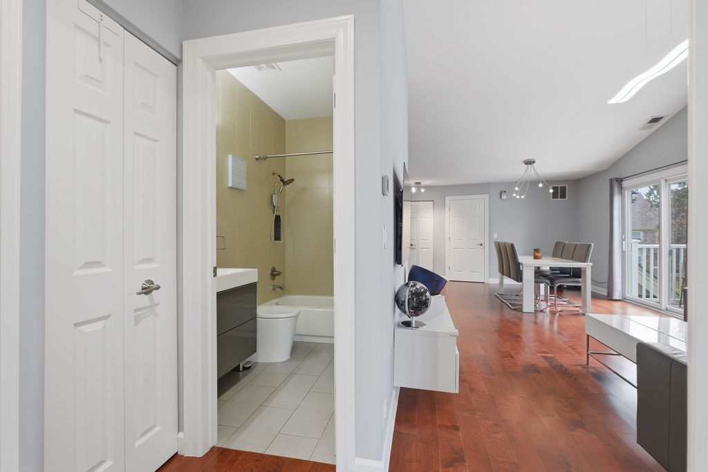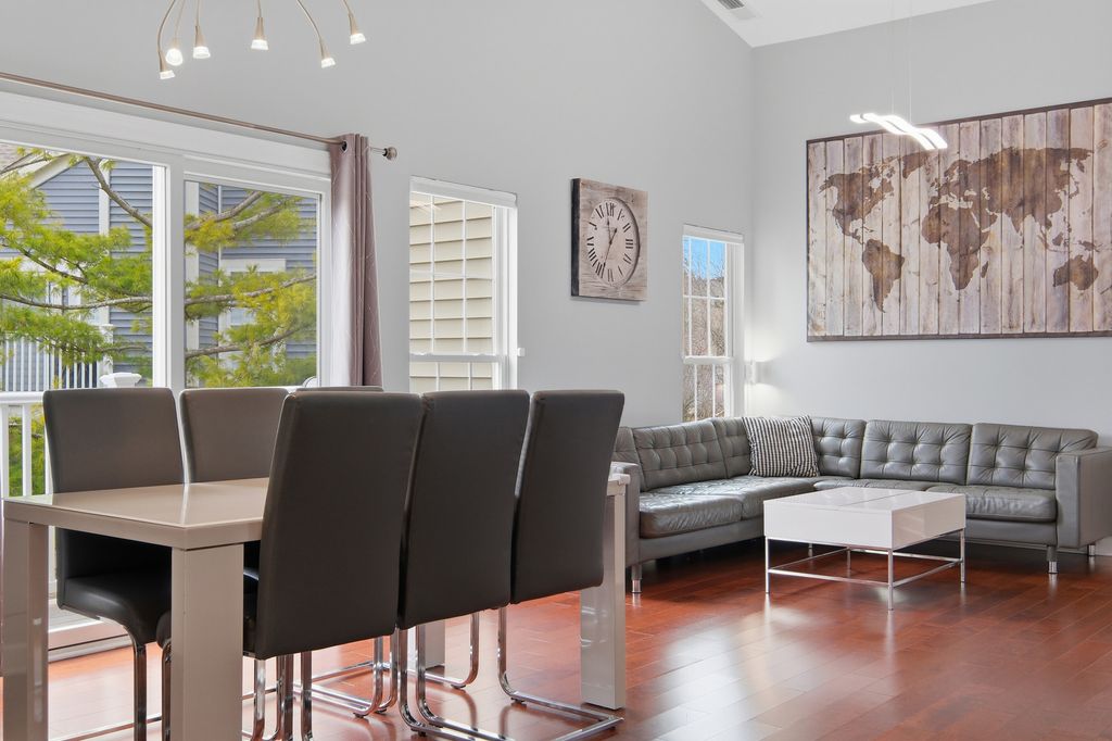 Beautifully updated 2 Bedroom townhome located in the desirable Talbot's Mill subdivision, offering refined finishes and modern comfort throughout.The thoughtfully designed kitchen features custom cabinetry, sleek stainless steel appliances with a premium hybrid cooktop. Elegant engineered hardwood flooring extends throughout the home, complemented by a striking staircase with a stone accent wall and recessed architectural lighting.The spacious primary en-suite bedroom showcases a spa-inspired bathroom with a European-style walk-in shower, double vanity, and heated floors finished in contemporary tile. Electric blinds add a touch of sophistication and everyday convenience.The home is equipped with an intercom camera system, providing added security and convenient visitor monitoring. An expanded private balcony provides an ideal setting for evening relaxation or entertaining.Additional highlights include a dedicated laundry room with washer and dryer, a whole-home humidifier for enhanced comfort, and an attached one-car garage equipped with two motorized ceiling bike lifts and generous storage space. The home also offers two additional driveway parking spaces and ample guest parking.Perfectly situated within walking distance to playground.Close to Rainbow Falls Water Park, and the scenic Busse Woods forest preserve with trails, picnic areas, and an elk preserve.Conveniently located close to expressways, restaurants, and shopping.An exceptional opportunity offering both luxury and lifestyle.Must see!
