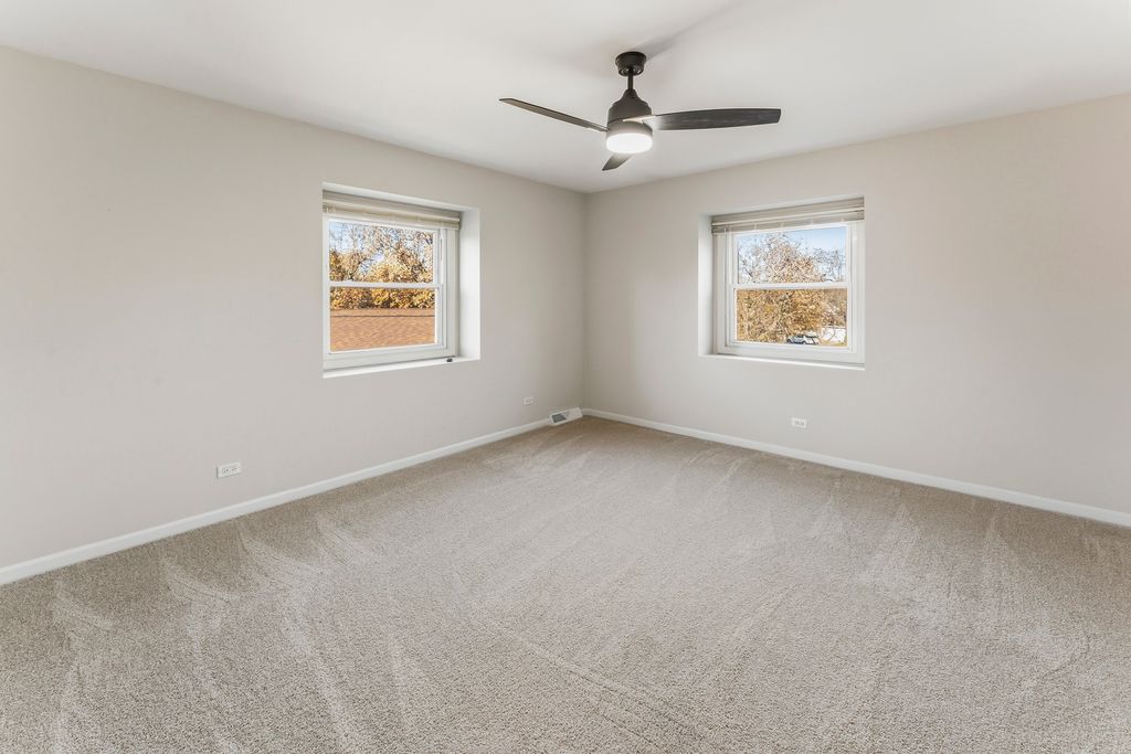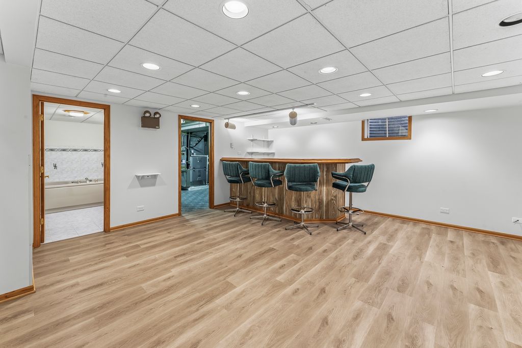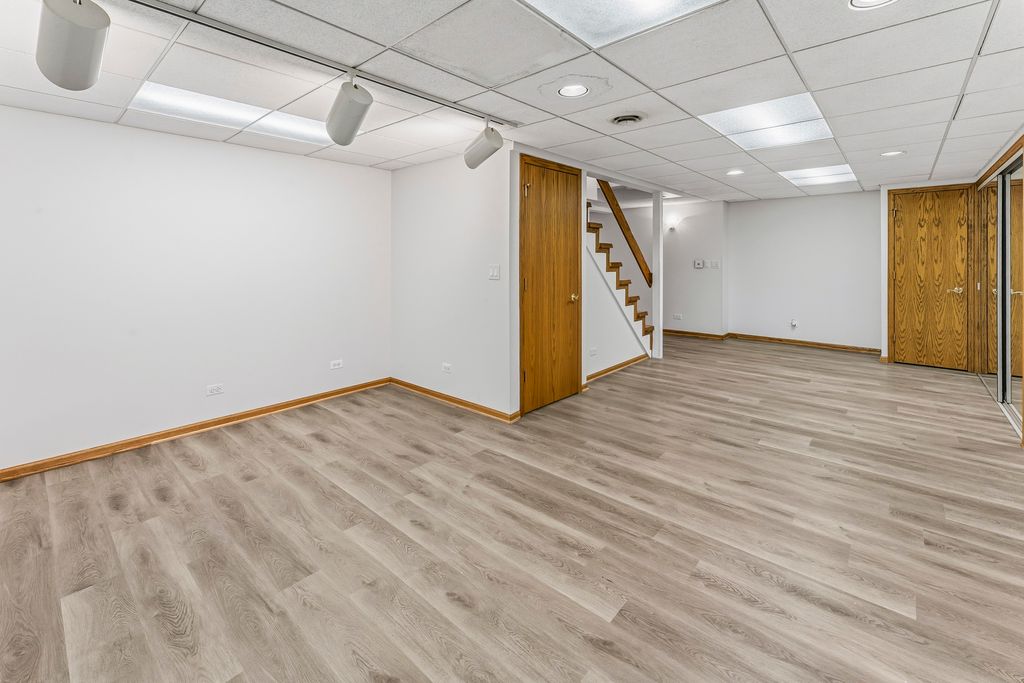 Welcome to this impressive all-brick, 4-bedroom, 3.5-bathroom two-story home, ideally positioned in Hunting Ridge, one of Palatine's most sought-after neighborhoods. Located in a quiet cul-de-sac, this property offers unmatched convenience-walking distance to Fremd High School, just steps to serene Peregrine Lake, and a short stroll to the coveted Hunting Ridge Elementary School. Inside, you'll find 4 generously sized bedrooms, including three with huge walk-in closets, and beautifully updated living spaces. Both full bathrooms on the second level have been completely renovated, and the home features new can lighting, new fans, and new light fixtures throughout. The main level includes a spacious mudroom and brand-new six-panel interior doors on the first and second floors. The kitchen offers all stainless steel appliances, with the entire suite replaced in 2020 and a brand-new dishwasher. The lower level is a true extension of the home, boasting a full finished basement with high ceilings, brand-new flooring, a full bathroom, a wet bar with beverage fridge, and ample room for recreation or entertaining. Other major updates include BRAND NEW ELECTRICAL PANEL, new carpet, a new garage door and opener, two water heaters, and a sump pump with battery backup for peace of mind. The heated two-car attached garage is a standout feature with its large storage area-perfect for an extra refrigerator, deep freezer, or hobby space. The driveway also includes a side expansion offering an additional parking spot. Out back, enjoy a fenced-in dog run, a full sprinkler system (recently winterized), and a private yard ideal for pets, play, or relaxing weekends at home. With its unbeatable location, thoughtful updates, abundant storage, and fantastic layout, this home offers incredible space and convenience for any family. Move-in ready and beautifully maintained-this is the one you've been waiting for.