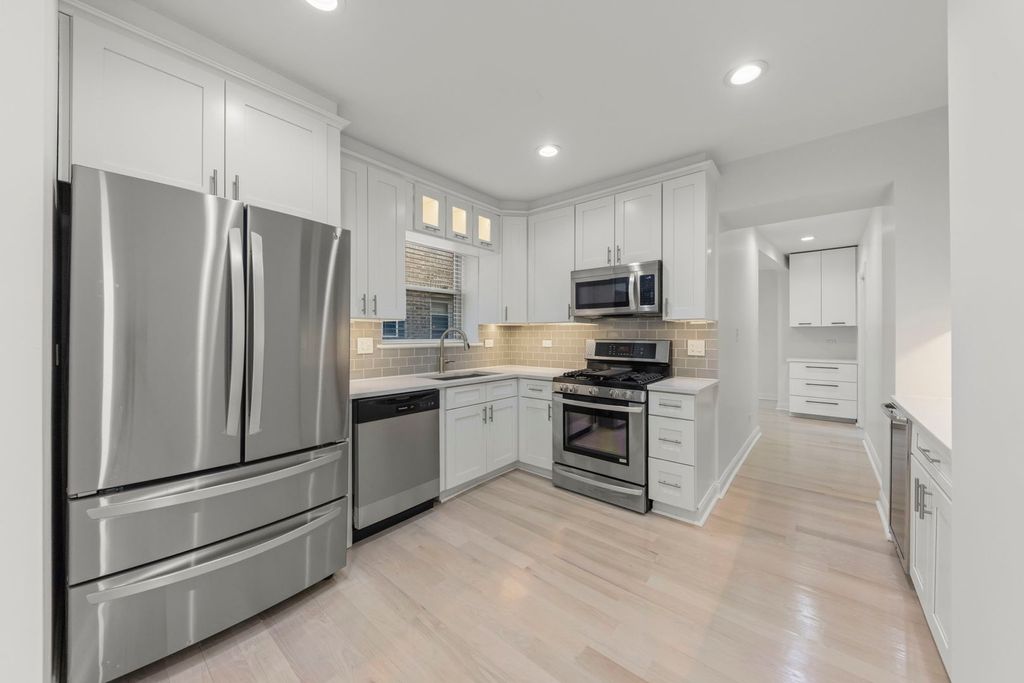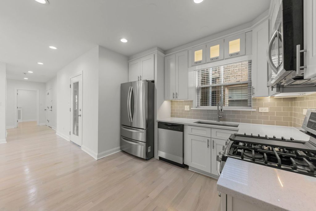 Welcome to 4117 W Kamerling Avenue, a beautifully updated 4-bedroom, 2-bath second-floor condo offering refined city living in West Humboldt Park, just minutes from Logan Square and the iconic 606 Bloomingdale Trail. This expansive home features hardwood floors throughout and a sleek, modern kitchen with granite countertops and stainless-steel appliances, perfectly designed for both everyday living and entertaining. The sun-filled living and dining areas are generously sized and wired for a sound system, creating a seamless space for relaxing or hosting. Both bathrooms showcase elegant marble finishes, with the primary bath featuring a luxurious jet tub-your own private retreat. The primary suite offers comfort and privacy with a walk-in closet, while three additional well-proportioned bedrooms provide flexibility for guests, home office space, or family living. A second full bathroom, abundant in-unit storage, and thoughtful layout enhance everyday convenience. Additional highlights include a dedicated basement storage room, as well as building amenities such as a laundry room and party room, adding even more value. With its generous space, modern finishes, and unbeatable location near parks, trails, dining, and transit, this home delivers the perfect blend of comfort, lifestyle, and location. Come experience what makes this home truly special.