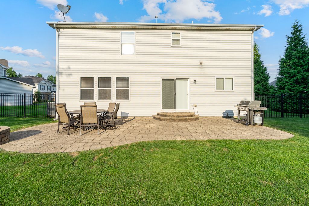 This beautiful home is nestled on a desirable cul-de-sac-style lot and offers a perfect blend of comfort, space, and scenic beauty. Step into a spacious kitchen featuring 42" oak cabinets, a center island, and a large pantry-ideal for the home chef. The sunlit breakfast area opens directly to a fully fenced backyard with a charming paver patio, playset, and serene open views-no rear neighbors, just gorgeous natural surroundings. Enjoy cozy evenings in the inviting family room, complete with a gas-log fireplace for added warmth and ambiance. The main level also includes a flexible front room that can serve as a home office, formal dining room, or additional living space. Upstairs, you'll find a convenient second-floor laundry room with cabinetry for extra storage. The luxurious primary suite features a walk-in closet and a private, upscale bath with a soaking tub, creating a true retreat. There's a spacious loft that could be converted to a 4th bedroom. Additional highlights include a full unfinished basement offering tons of potential, and a brand-new water heater installed in 2024 and new stove 2025. Don't miss this exceptional opportunity to own a spacious, versatile home in a picturesque setting!