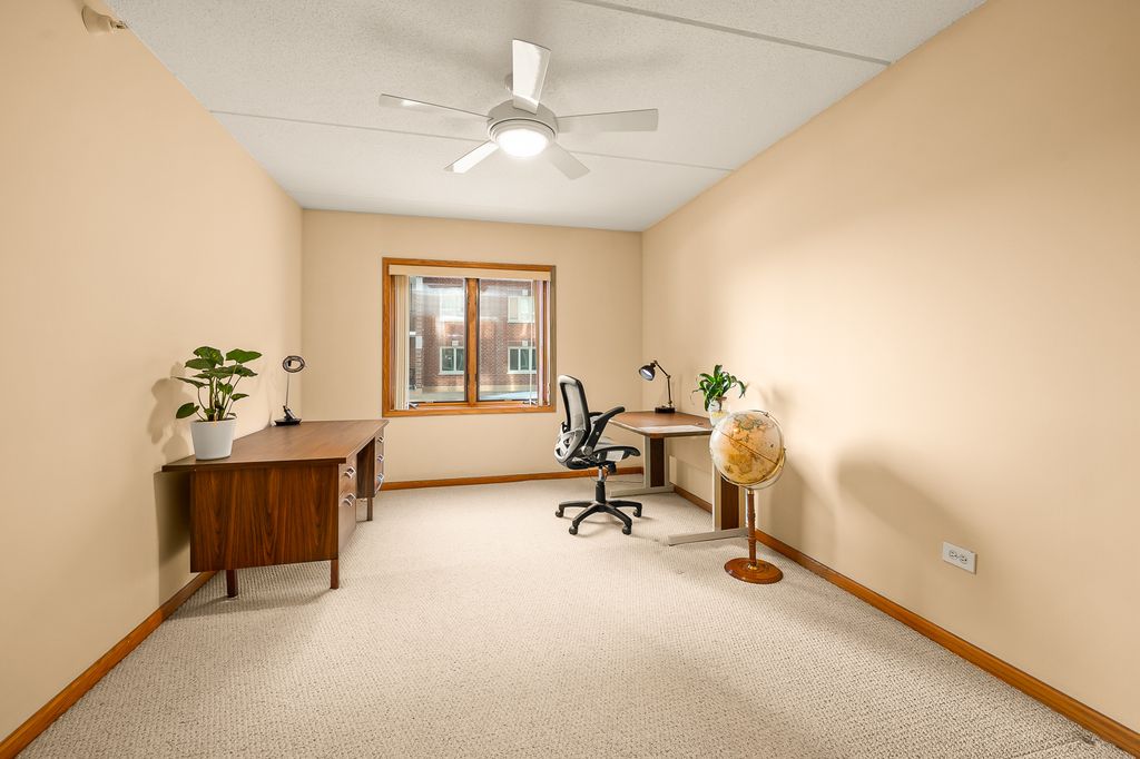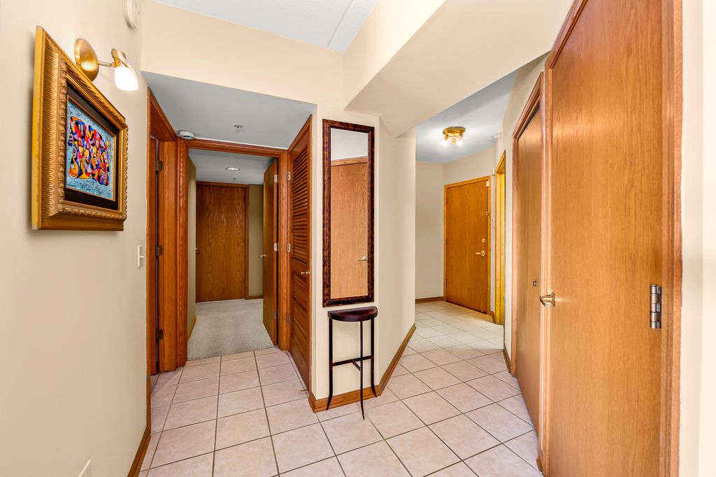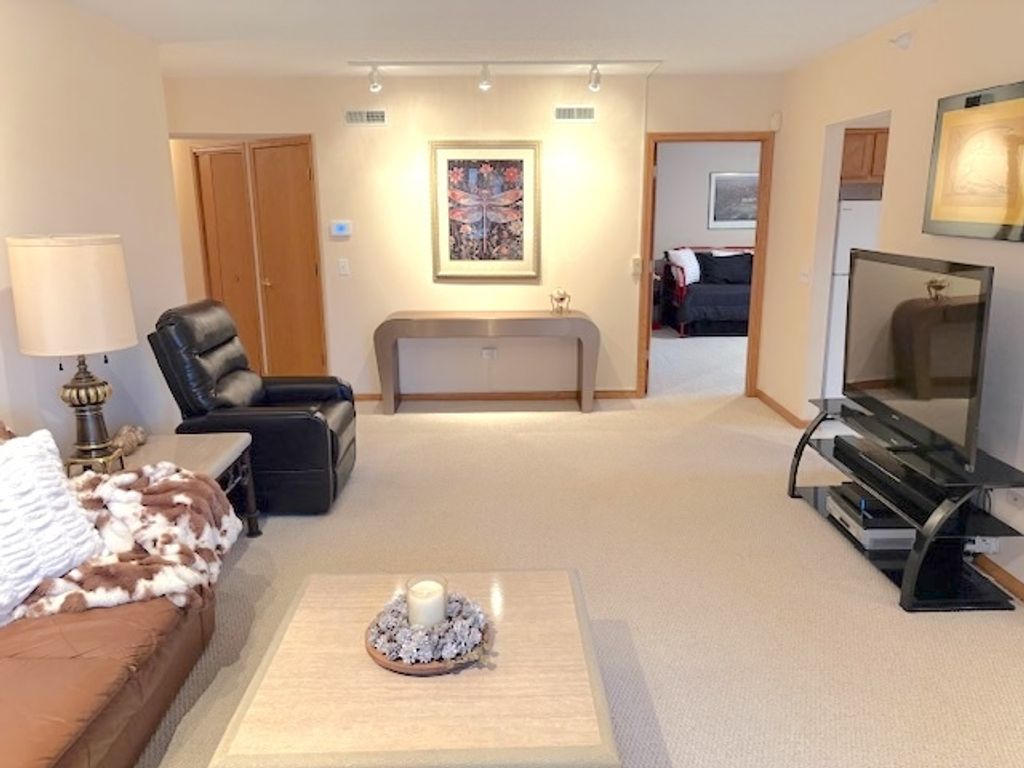 Beautiful 3 Bedroom 2 Bath sunny corner unit facing south and east. Kitchen with room for a table and chairs opens to dining room and huge living room with expansive covered balcony. Spacious master bedroom with master bath and whirlpool tub with separate shower. Full separate laundry room. Outstanding storage, cabinetry and closet space throughout this 1800 sq. ft. unit. Two walk in closets. Two heated garage spaces and large storage room. Pet friendly building. Heat, water, and cooking gas are included in assessments. Beautiful, quiet, building with full time maintenance staff. Go Home Happy!