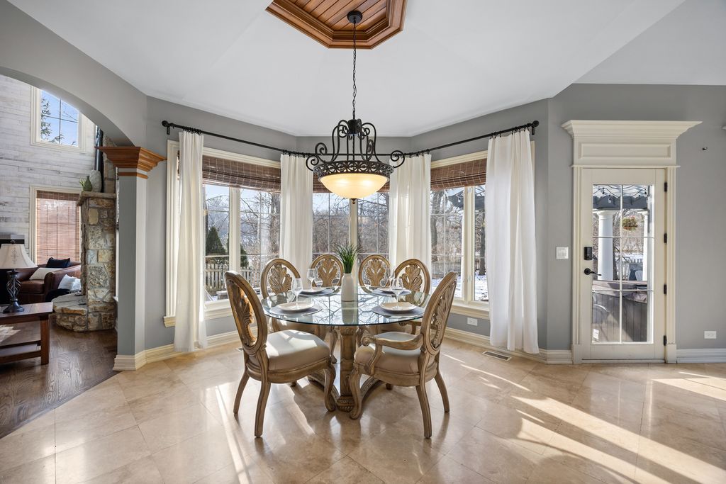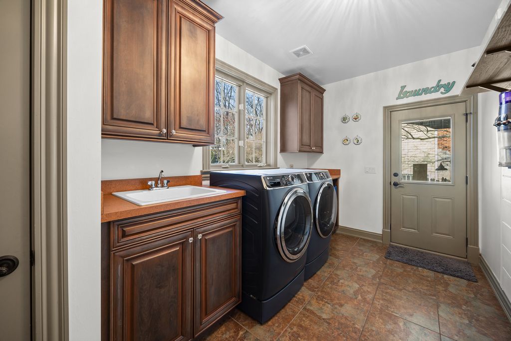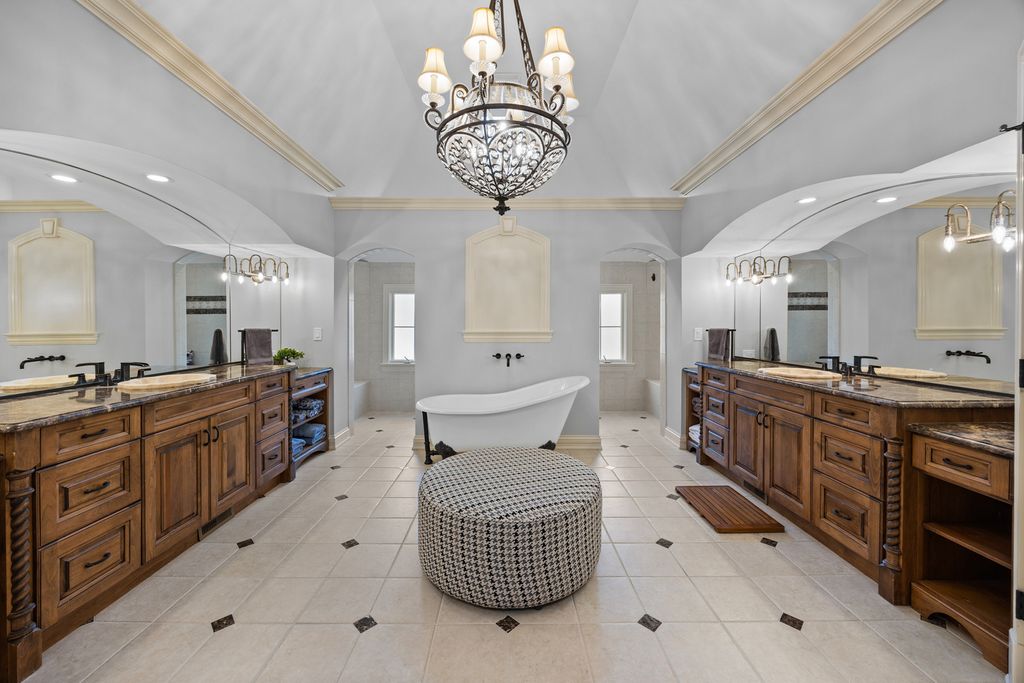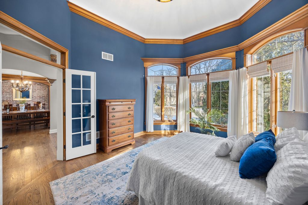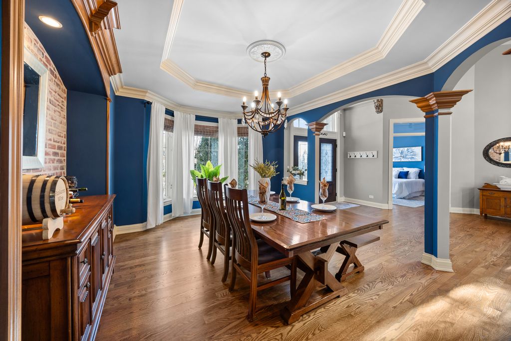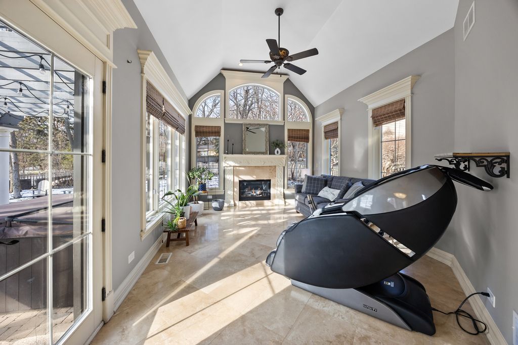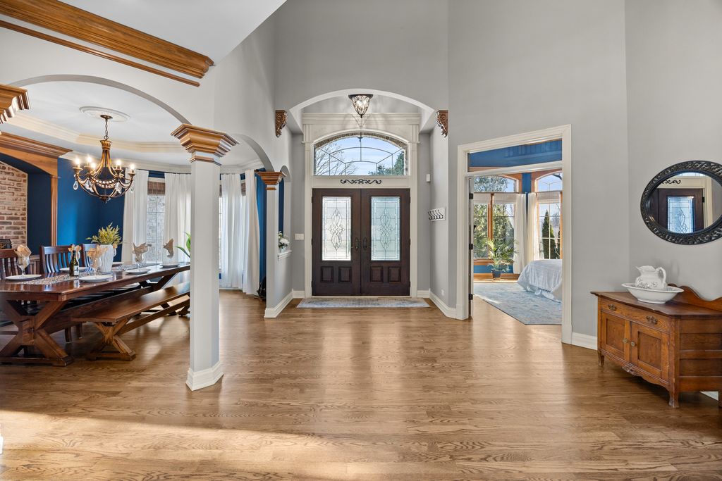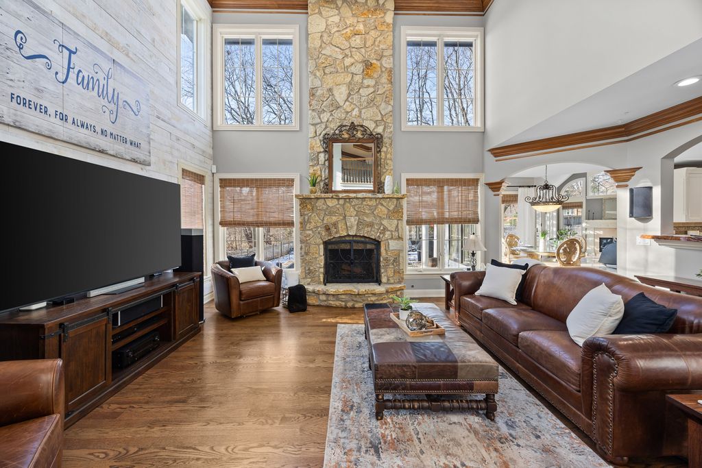 STUNNING! Custom French Country home in the highly sought-after Thornwood Reserve community, offering resort-style amenities and an exceptional lifestyle. Set on a gorgeous, wooded, nearly half-acre lot, this home features a paver brick patio with a saltwater hot tub, pergola, and fire pit-perfect for outdoor relaxation and entertaining. Step inside to an elegant, spacious foyer and an open, airy floorplan with volume and tray ceilings throughout. The chef's kitchen impresses with a large eating area, oversized island with breakfast bar, high-end appliances, travertine flooring, granite counters, and pantry- open to the expansive family room with a floor-to-ceiling stone fireplace. Entertain in style in the formal dining room with a butler's service area with a beverage refrigerator. Enjoy the sun-filled, solarium-style living room boasting a cozy second fireplace, too. The luxurious primary suite includes a private hallway leading to a generous walk-in closet and a spa-like bath with double vanities, oversized shower with dressing area, a clawfoot soaking tub and skylight. Don't miss the bonus storage area! Two additional generously sized bedrooms and a shared bath complete the upper level. A desirable first floor bedroom with full bath and walk-in shower is ideal for guests, a home office, or multigenerational living. The partially finished basement offers additional living space, roughed in plumbing, tall ceilings, and a third fireplace-ready for your finishing touches. Car enthusiasts will love the attached 3car heated garage with epoxy flooring. Additional highlights include: New and refinished hardwood flooring (2023), Zoned heating & cooling (2022), Roof replaced (2020), New washer & dryer (2023) in separate laundry/mudroom with utility sink, Hot water heater (2023), Saltwater hot tub (2023), Updated LED lighting with dimmers, Fresh paint and new bedroom carpeting. Beautifully maintained with timeless finishes, thoughtful updates, and an unbeatable location. Highly rated St. Charles School District 303 and convenient to the Randall Road corridor and downtown St. Charles. Thornwood amenities include a pool, tennis, pickleball, clubhouse, social activities, paved walking paths, parks, basketball courts, and more! WELCOME HOME!